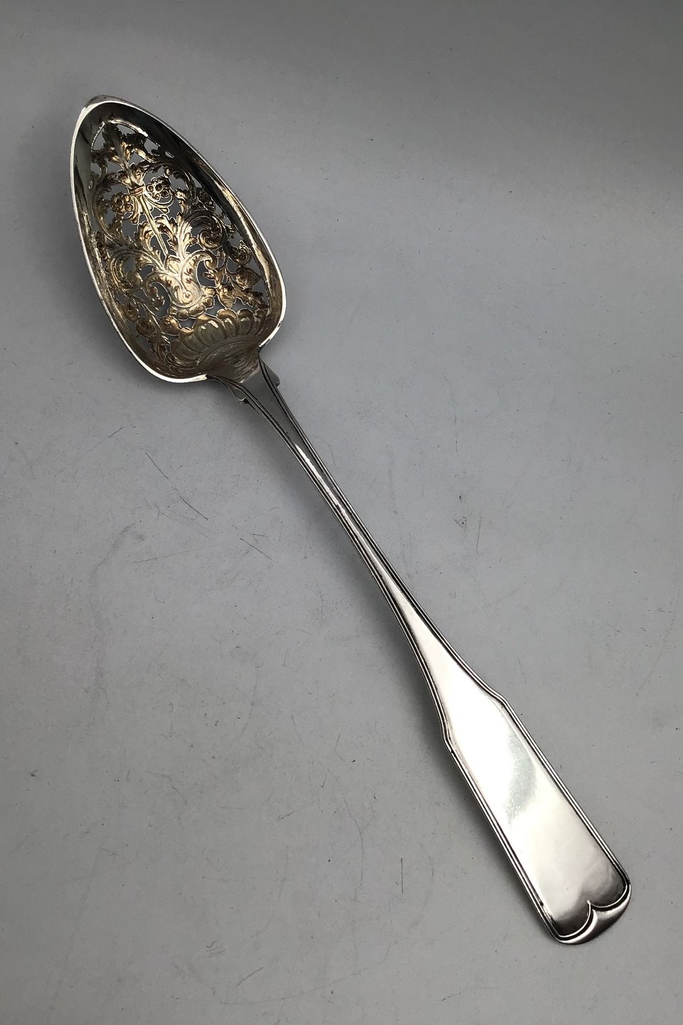 Engel Gammel Riflet Silver Berry Spoon (1848) Measures 30.5 cm (12 inch) Partially Gilded (Engraved)