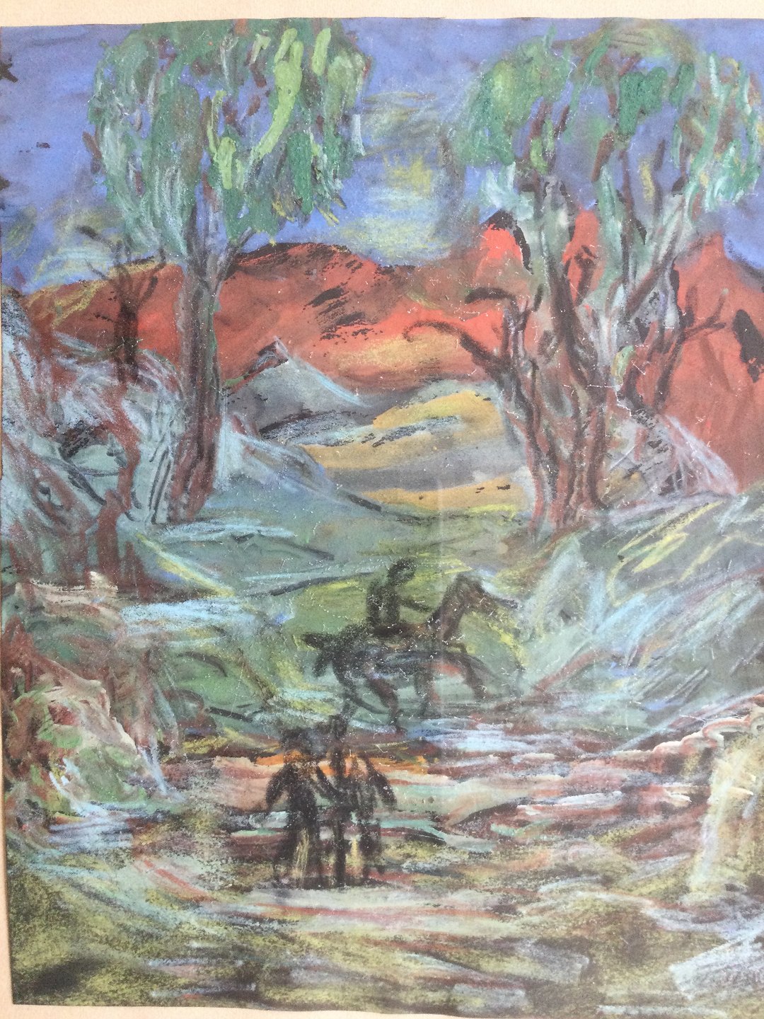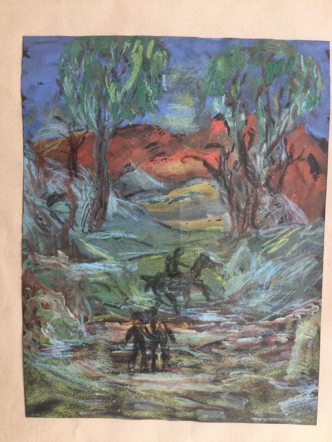 Text available in Danish: Maleri af Jens Nielsen - Religiøst motiv med personer i landskab.