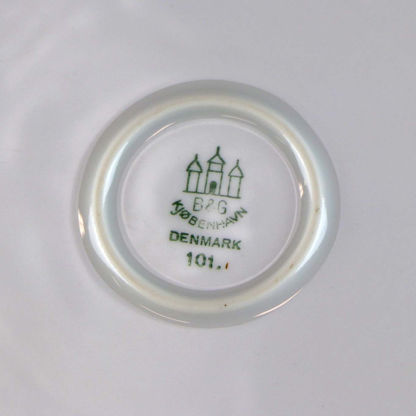 Rundt fad med hanke i porcelæn fra stellet Erantis. Nr. 101