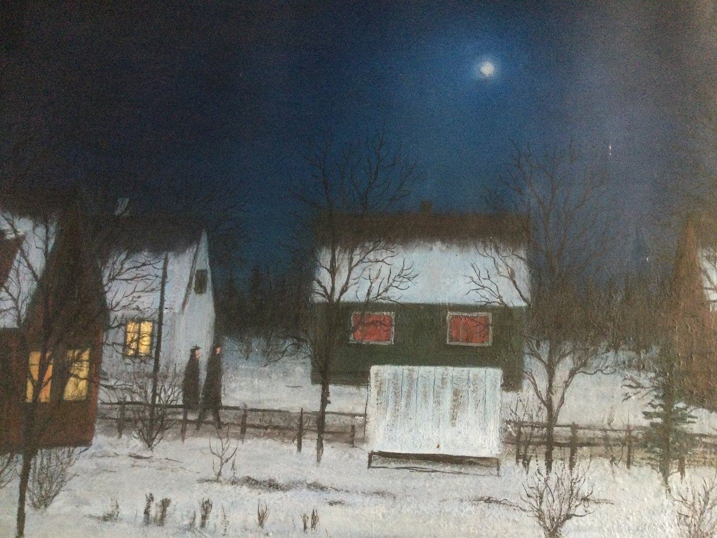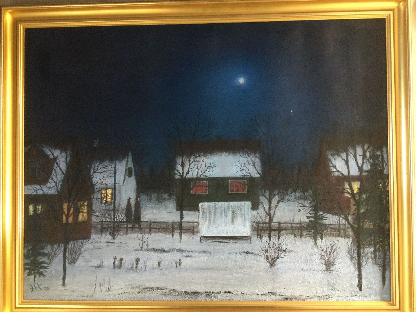 Maleri af Henning Therkildsen - Aftenparti fra Grønlandsk bygd.