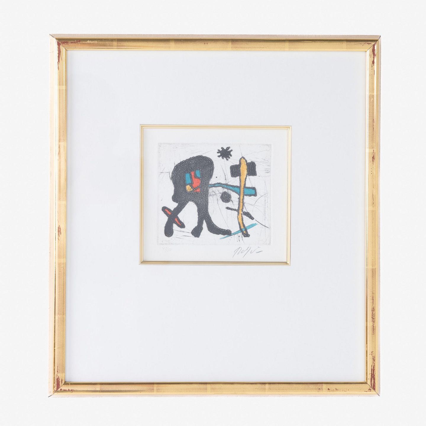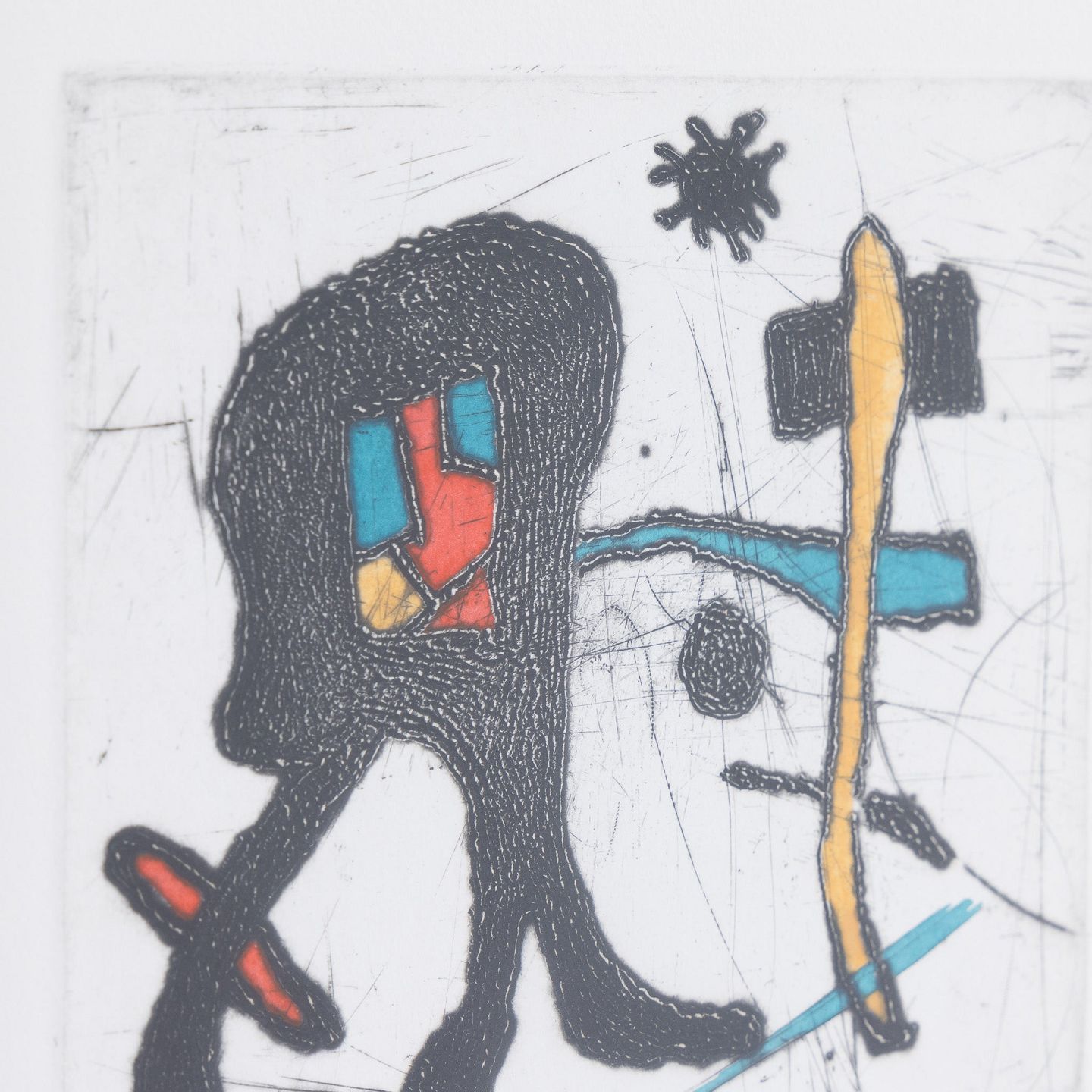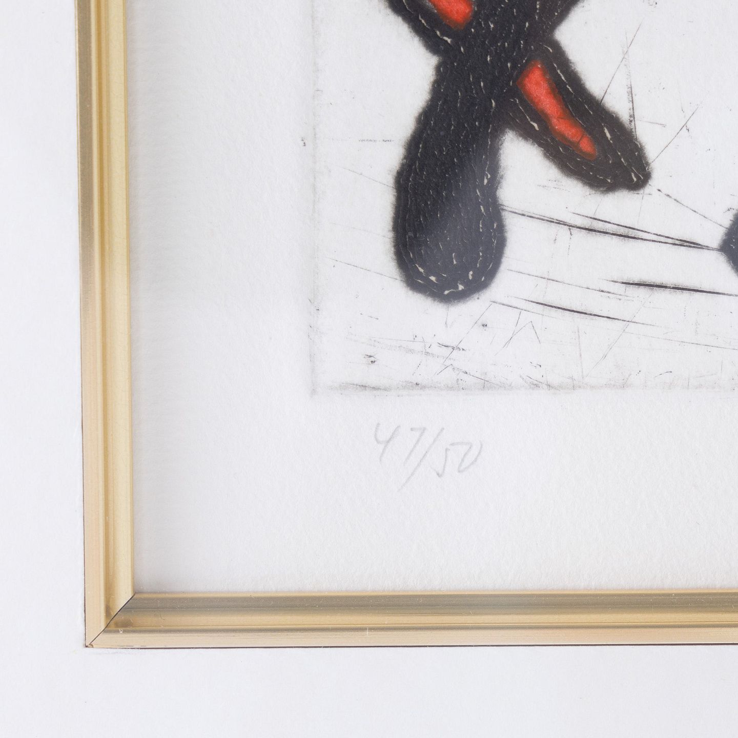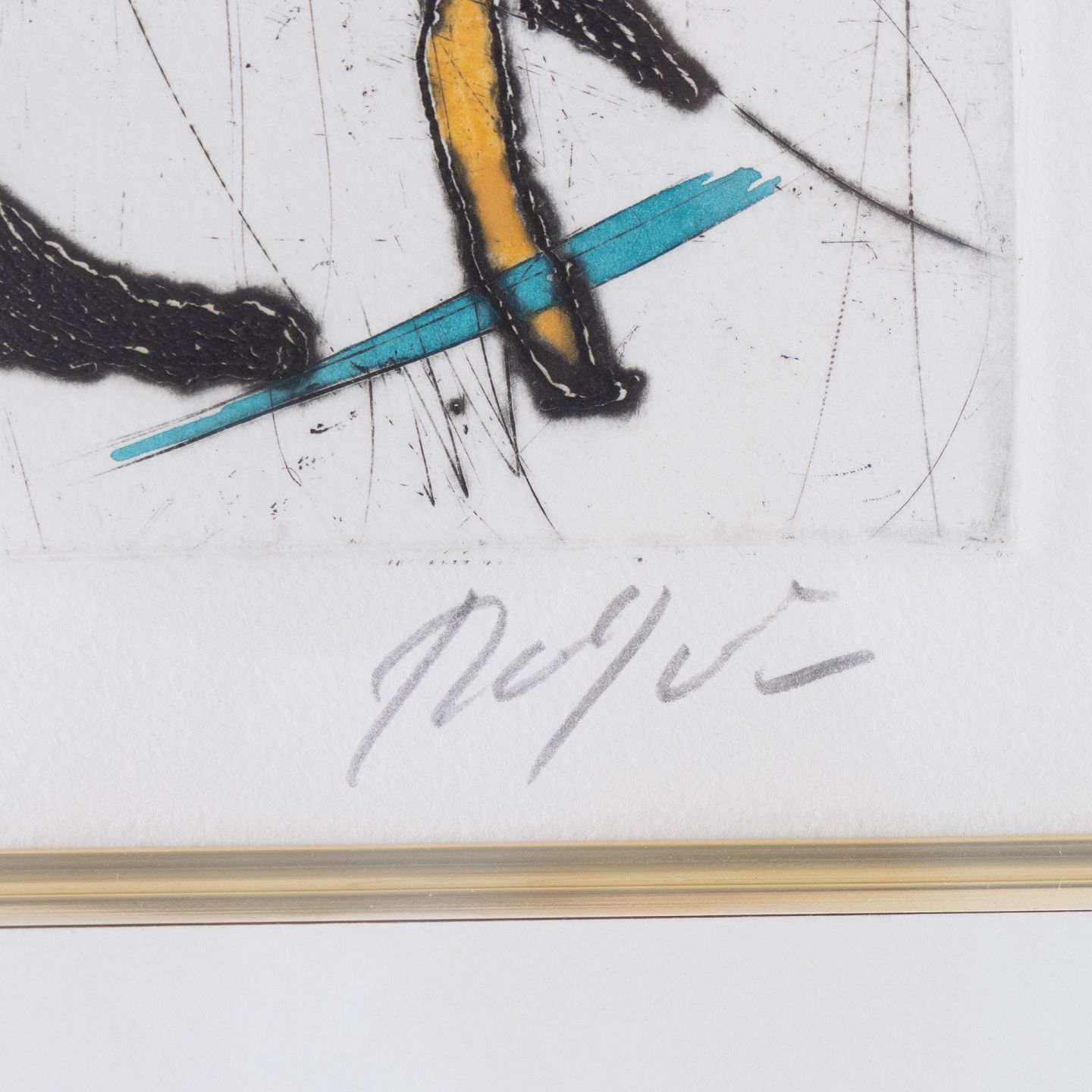 Signed etching in gold frame and passepartout with incorporated smaller frame. 47/50.