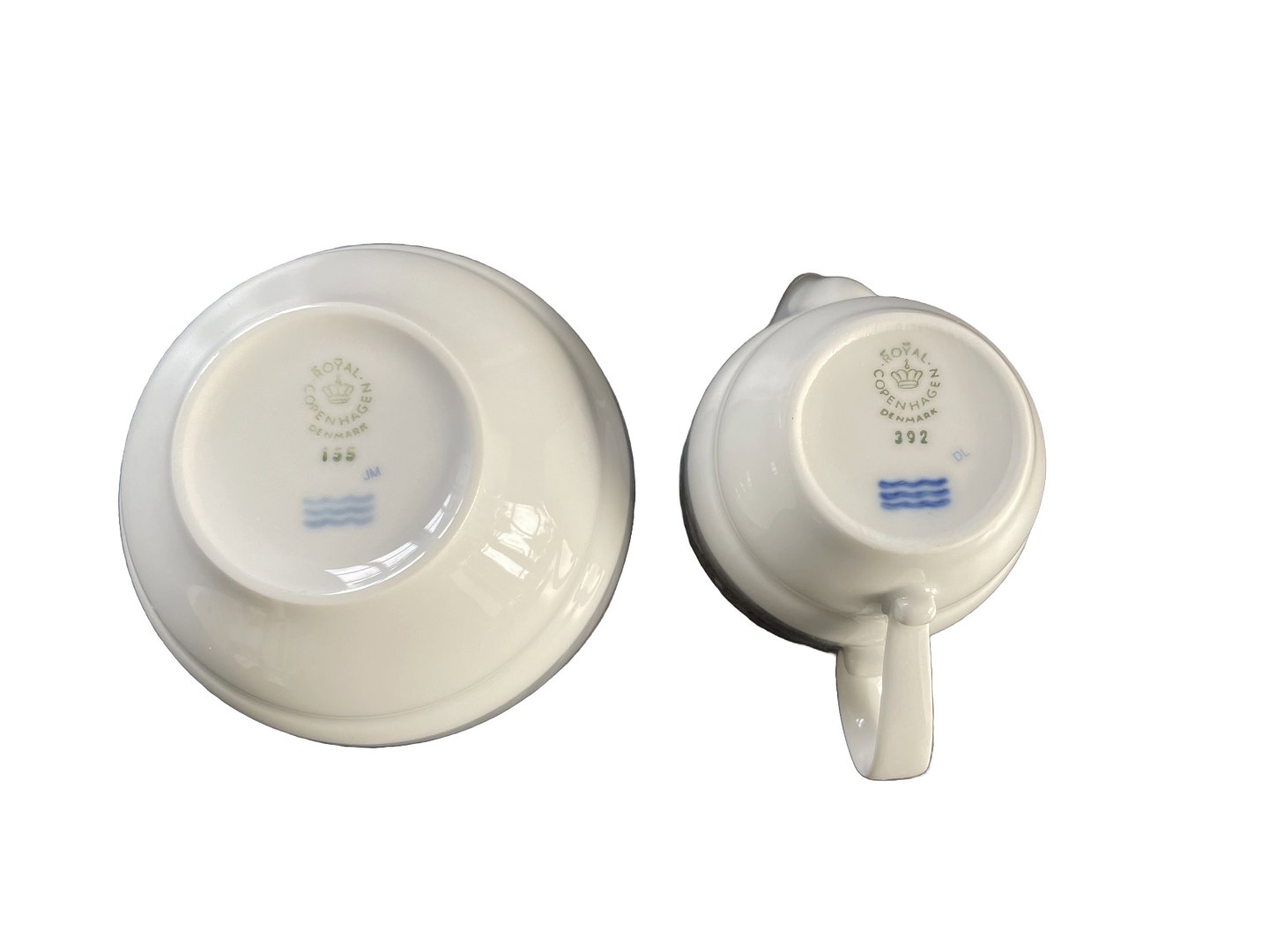 Flødekande nr. 392. Højde 5,5 cm. Længde 10 cm. Pris: 3750 kr. for sættet. Lager: 1 sæt