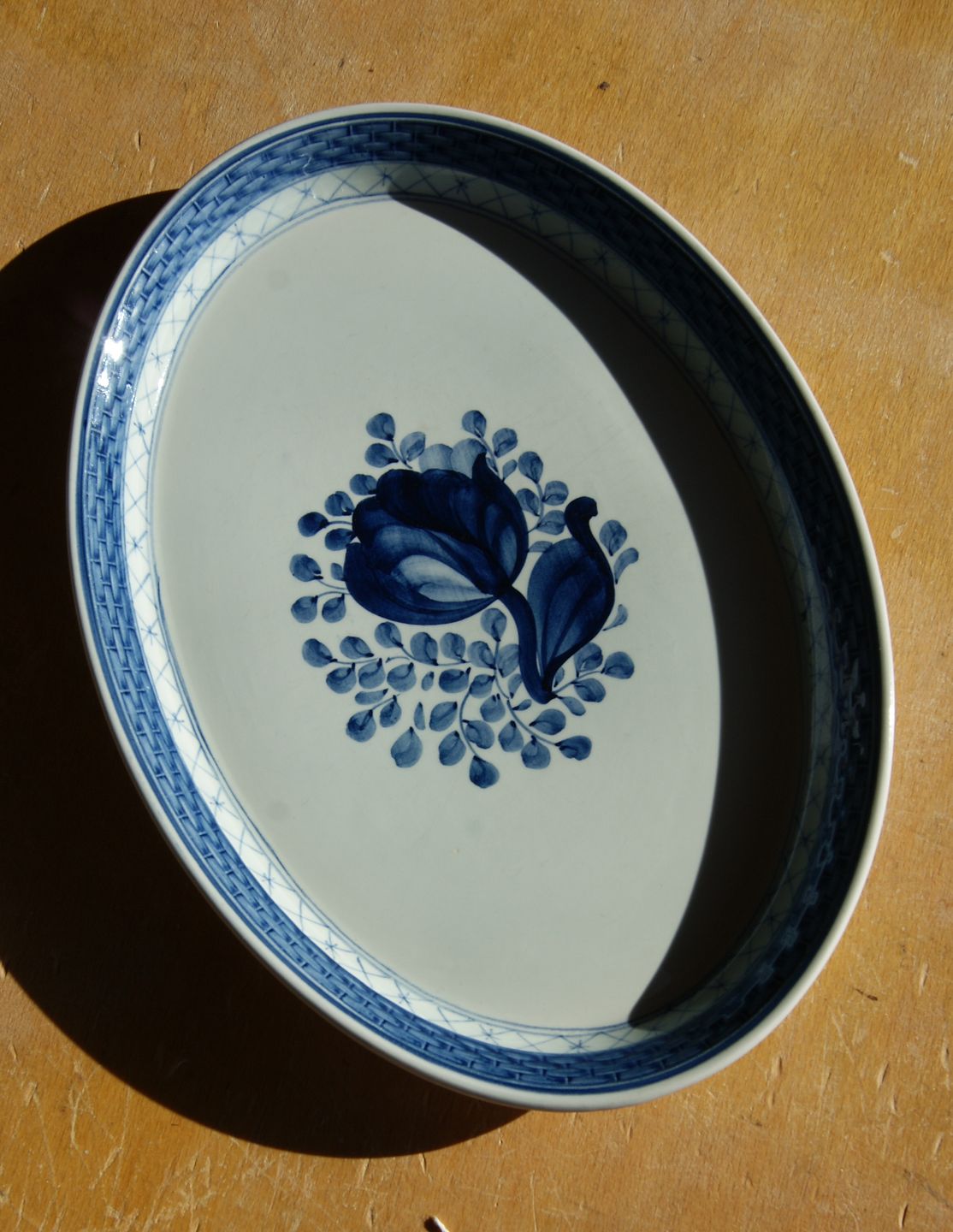 Trankebar fajance porcelæn, store ovale serveringsfade nr. 930, L 43,5cm