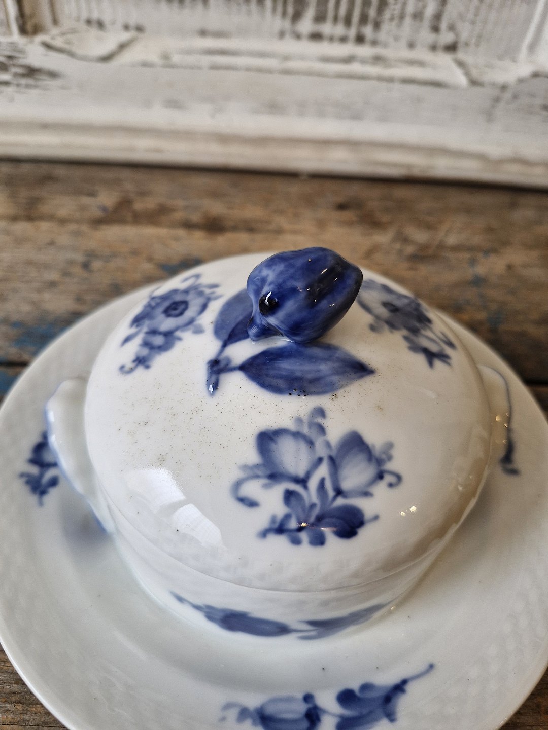 Royal Copenhagen Flettet Blå Blomst smørskål på fast underfad no. 8076