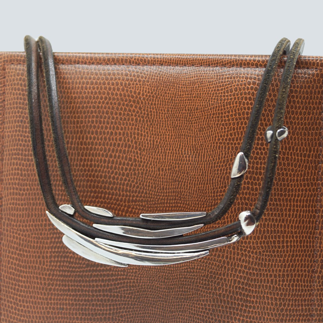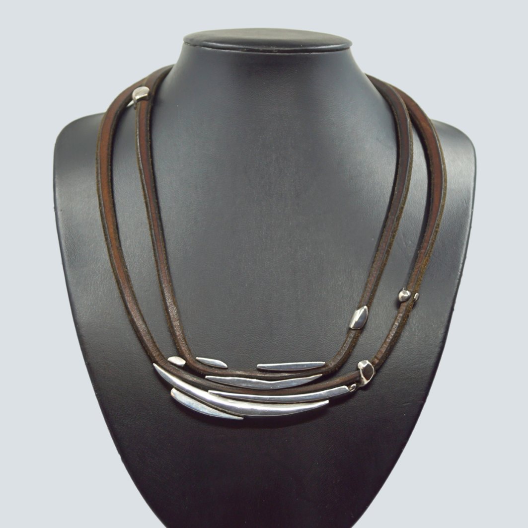 Anette Kræn for Georg Jensen; Stort halssmykke i sterling sølv med brunt læder #310.