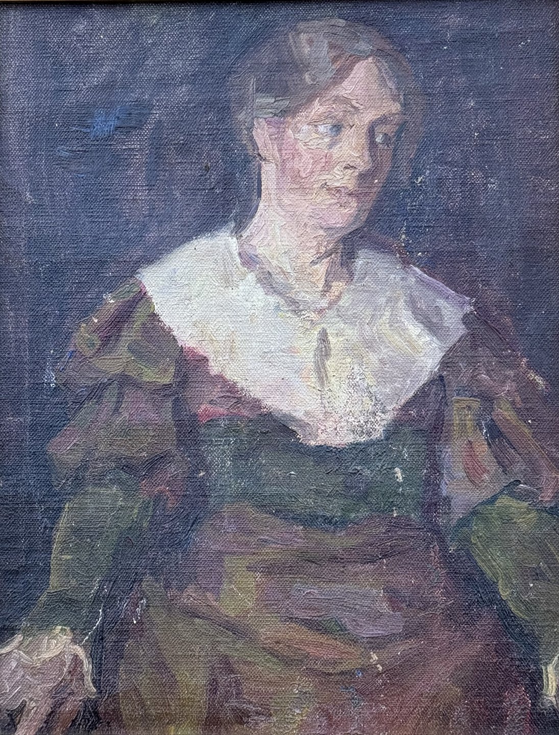 Portrait of seated woman. Painted by Danish Hans Dall (1862-1920). Inserted in gold-painted wooden frame. Brass sign with the artist's name. Signed in the lower right corner. Dimensions: 36.5 x 43 cm (including the frame) - 25 x 32 cm (without the frame). Frame and canvas in good condition.