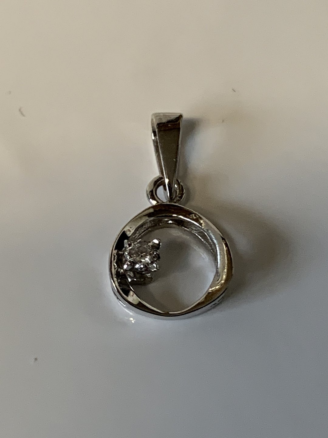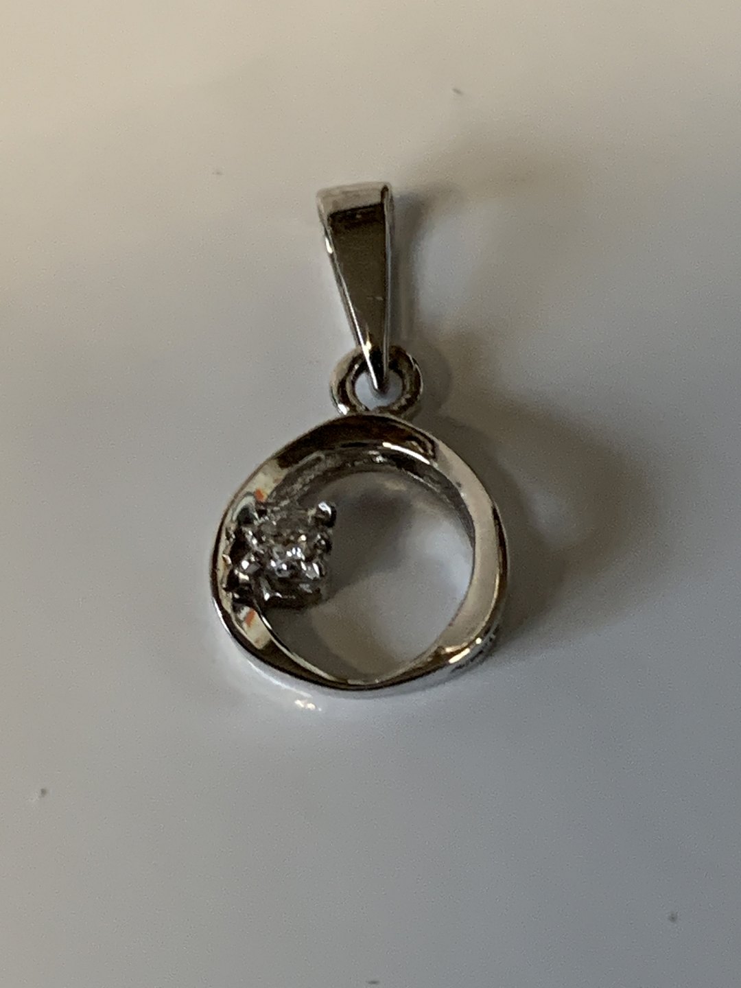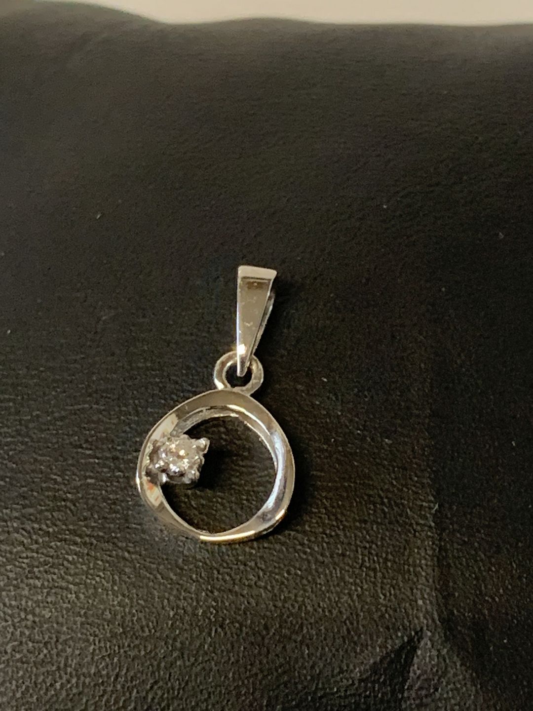 Vedhæng til halskæde i 14 karat hvidguld, med diamanter. Stemplet 585 BLI