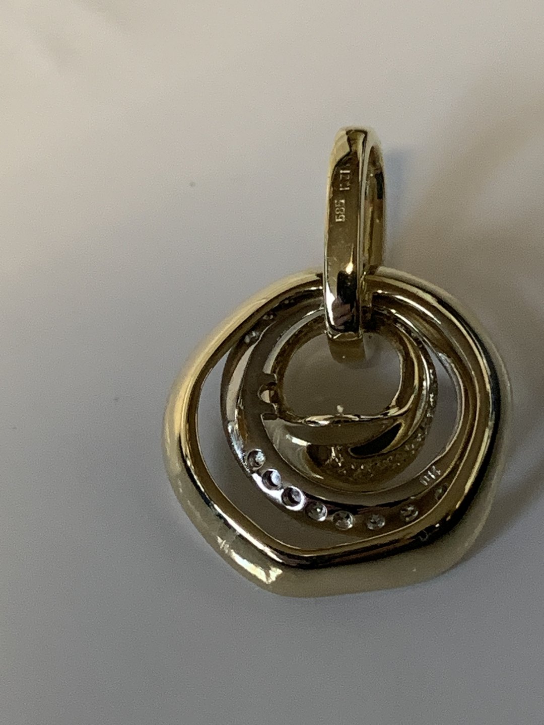 Vedhæng i 14 karat rød / hvidguld, med diamanter. Tidløst design.
