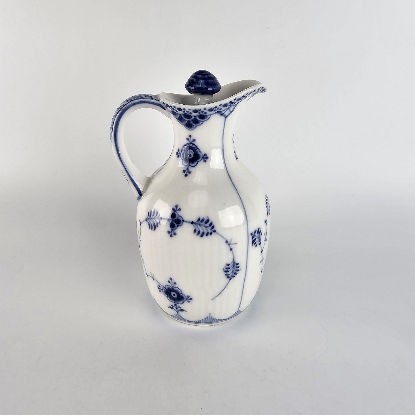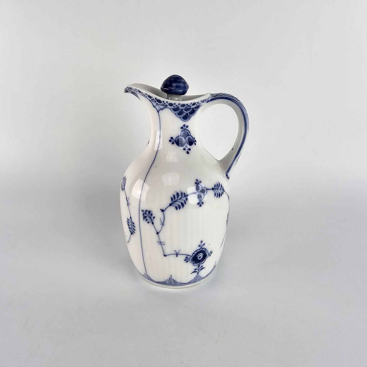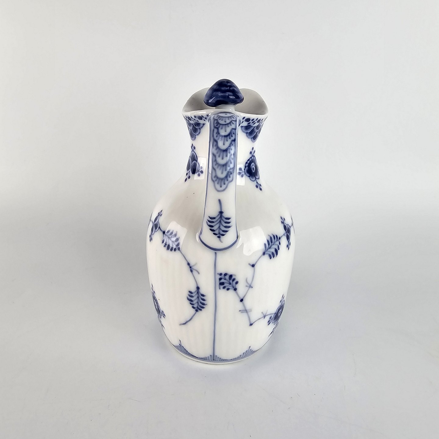 Kongelig eddikekande i porcelæn fra stellet Musselmalet riflet.