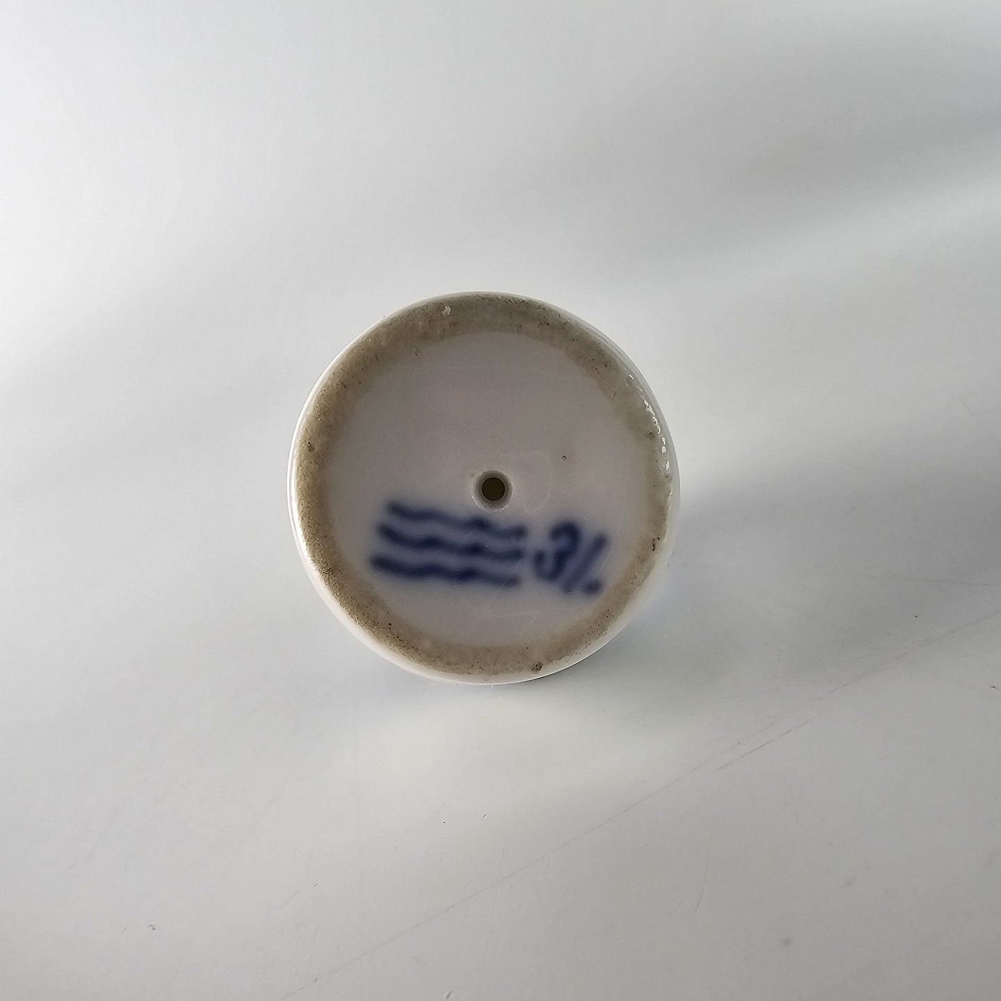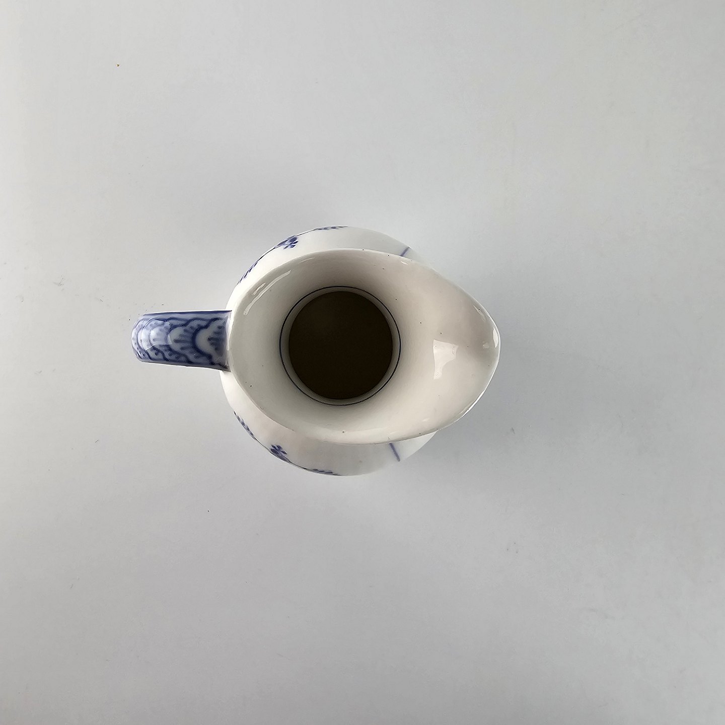 Musselmalet er af kongeligt hvidt porcelæn, dekoreret med rifler og mønster af blå ranker og blomster
