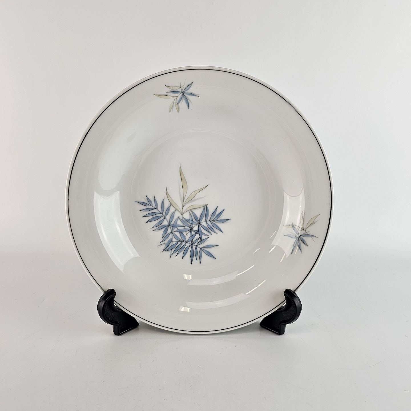 Apollo er stel i hvidt porcelæn dekoreret med blå og gulgrønne blade.