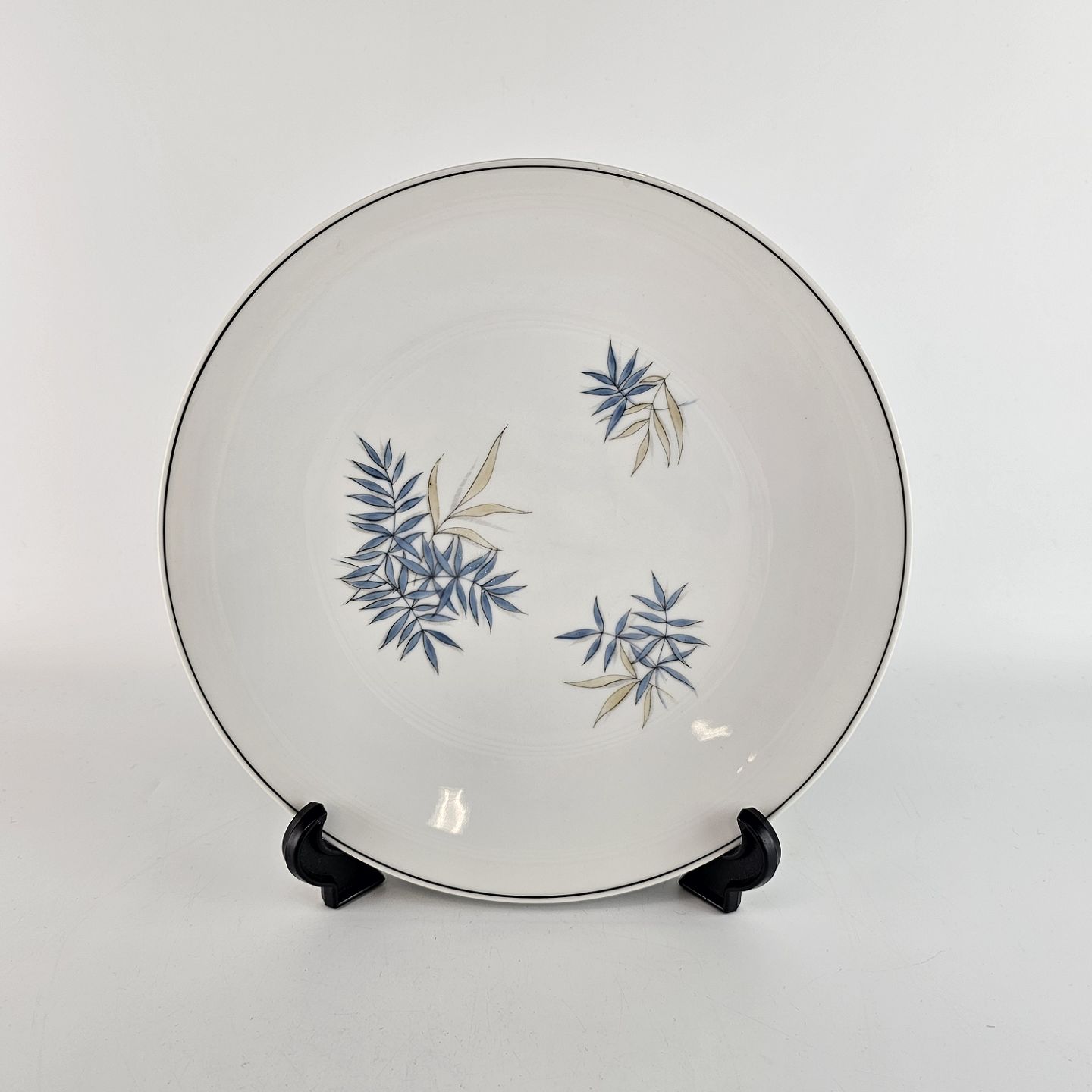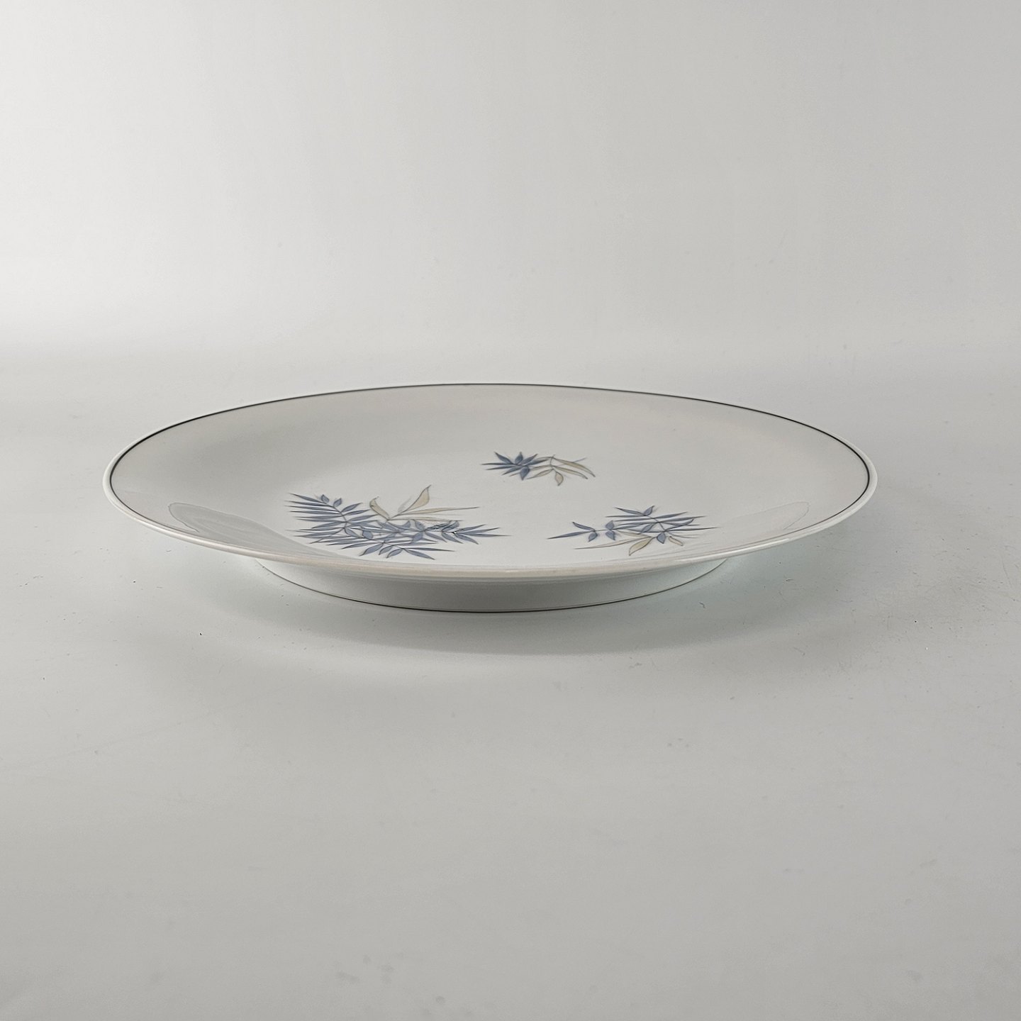 Apollo er stel i hvidt porcelæn dekoreret med blå og gulgrønne blade.