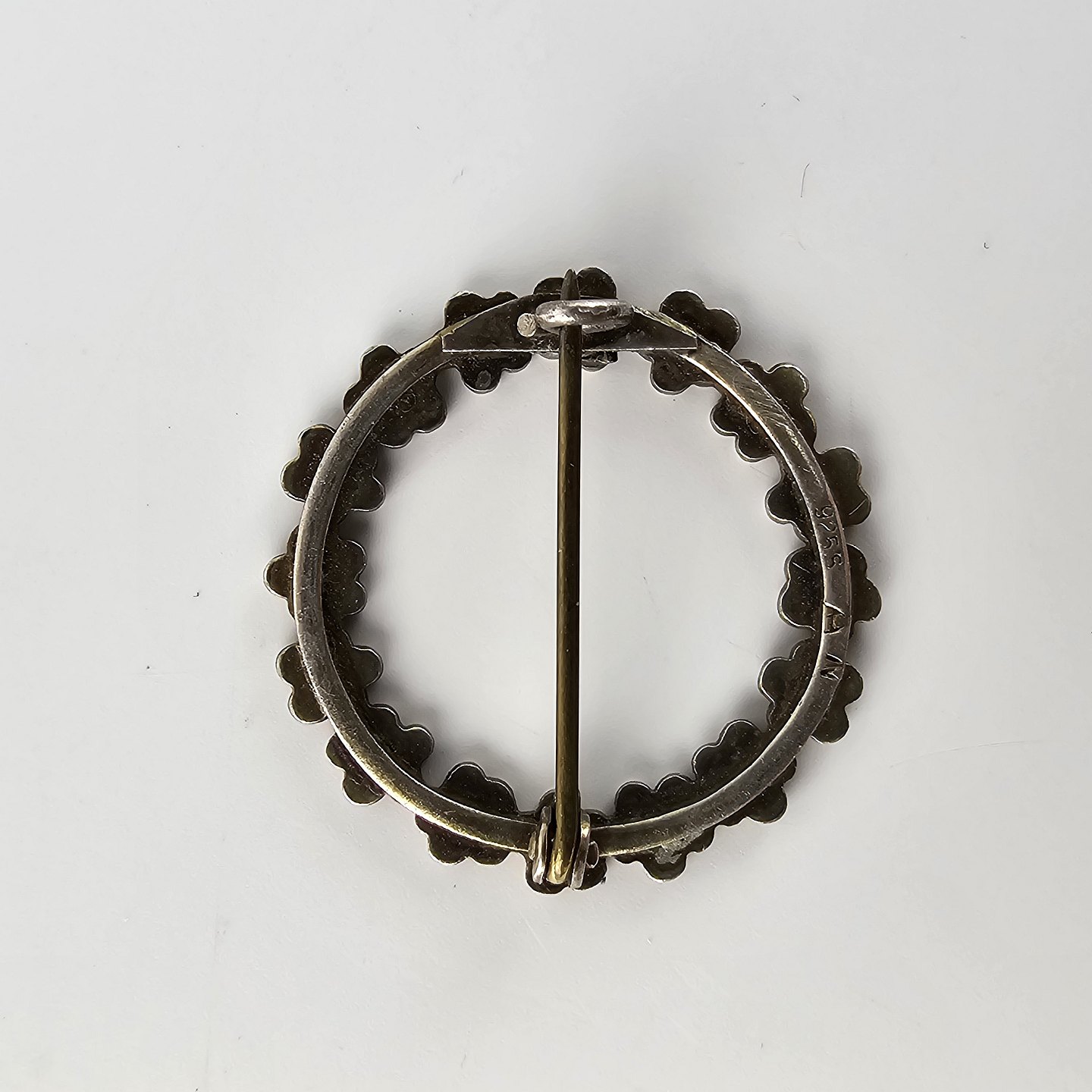 Rund forglem-mig-ej broche i forgyldt sterlingsølv og blåt emalje.