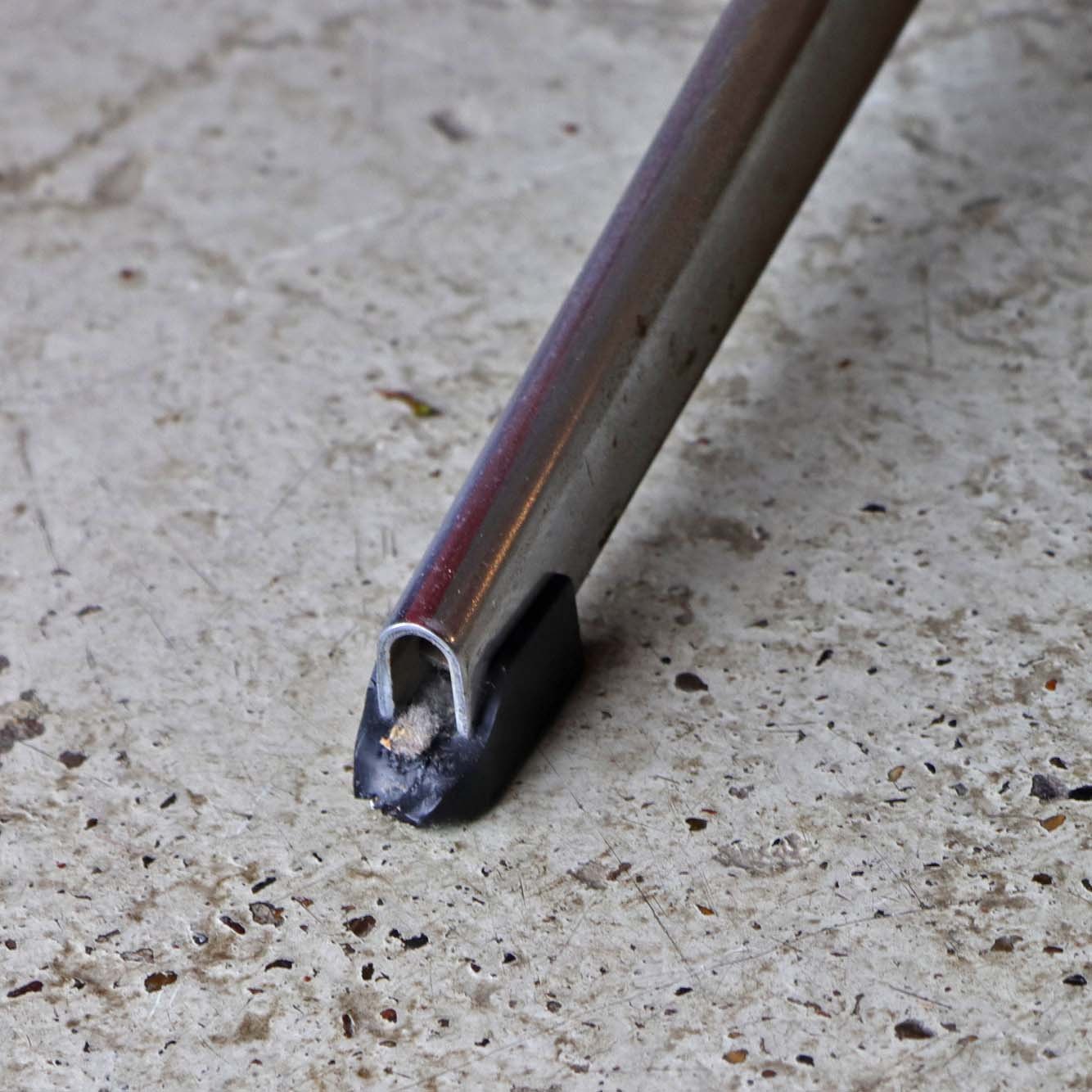 Fremstår med solbleget stof og brugsspor på fod. Trænger til ompolstring.