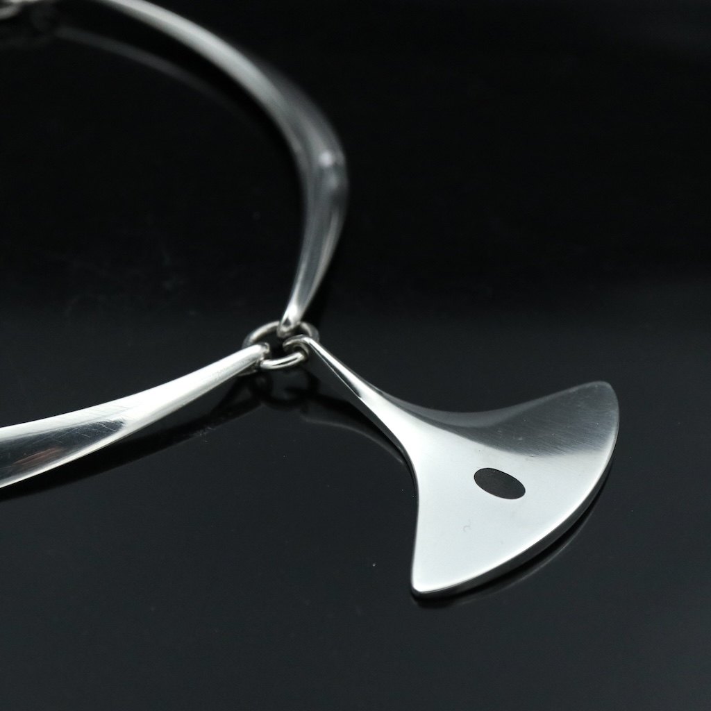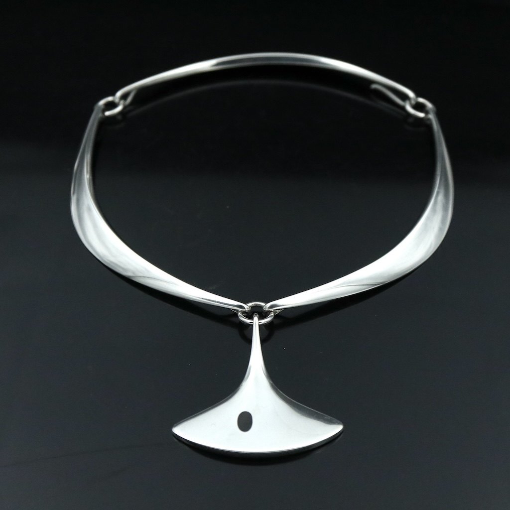 Hans Hansen. Halsring #320 i sterling sølv med emaljevedhæng #323 - Bent Gabrielsen.