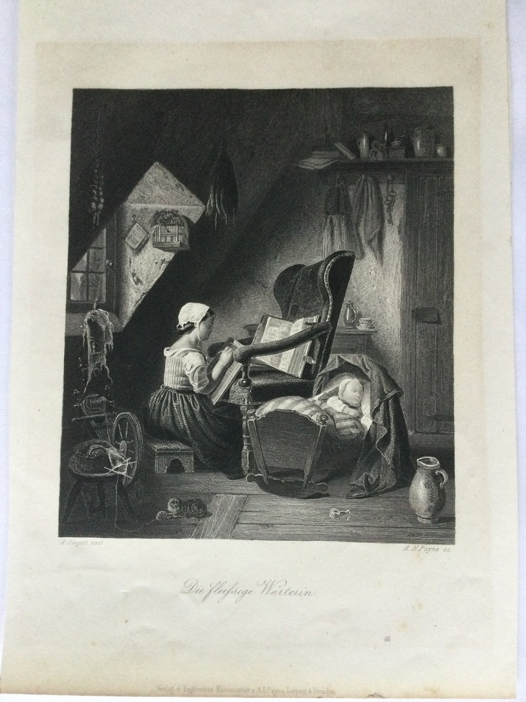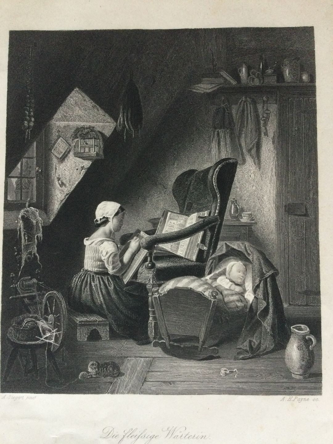 Stålstik 1855 af Albert Henry Payne - Den hårdtarbejdende barneplejerske.