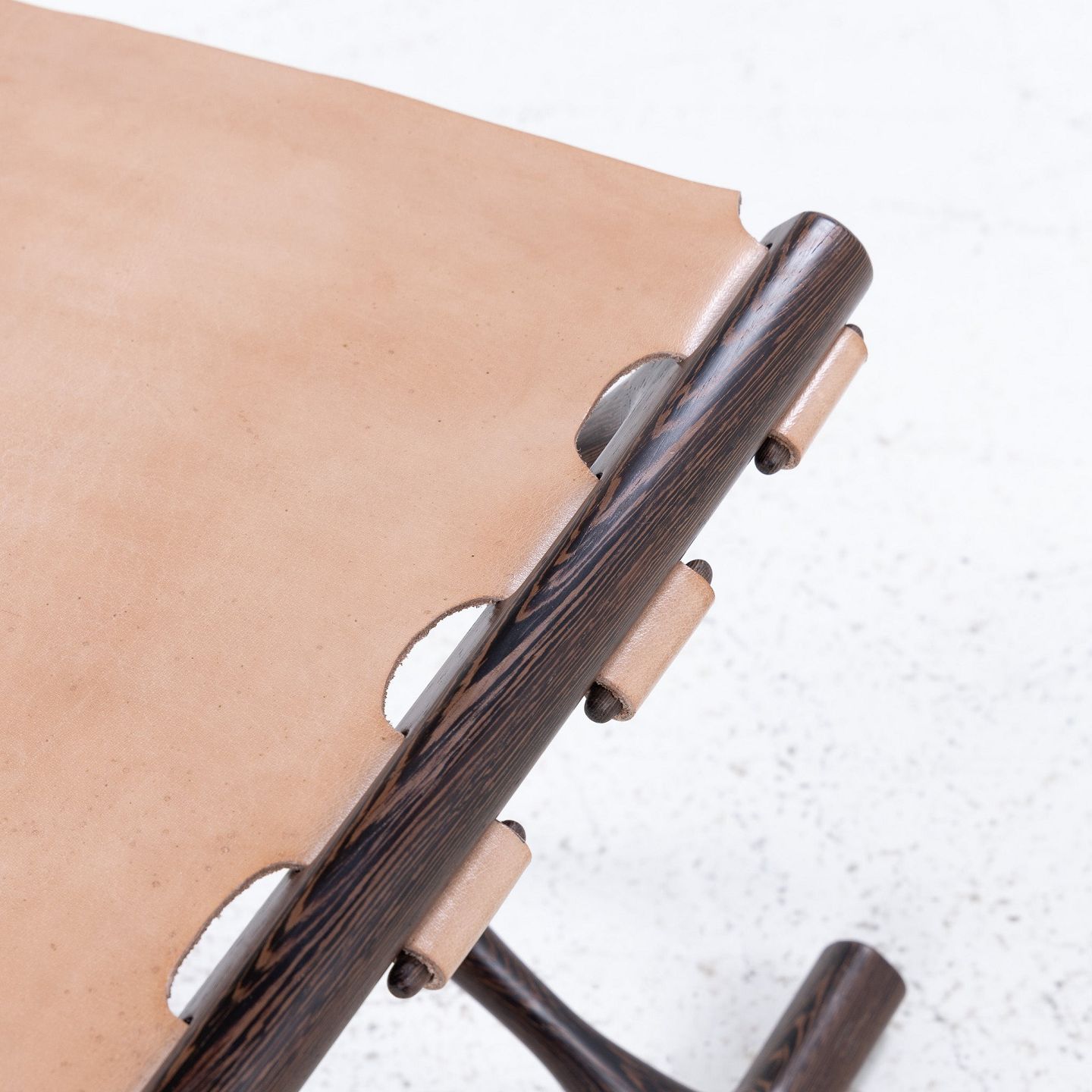 'Guldhøj' - stool in solid wengé with natural grain leather.
