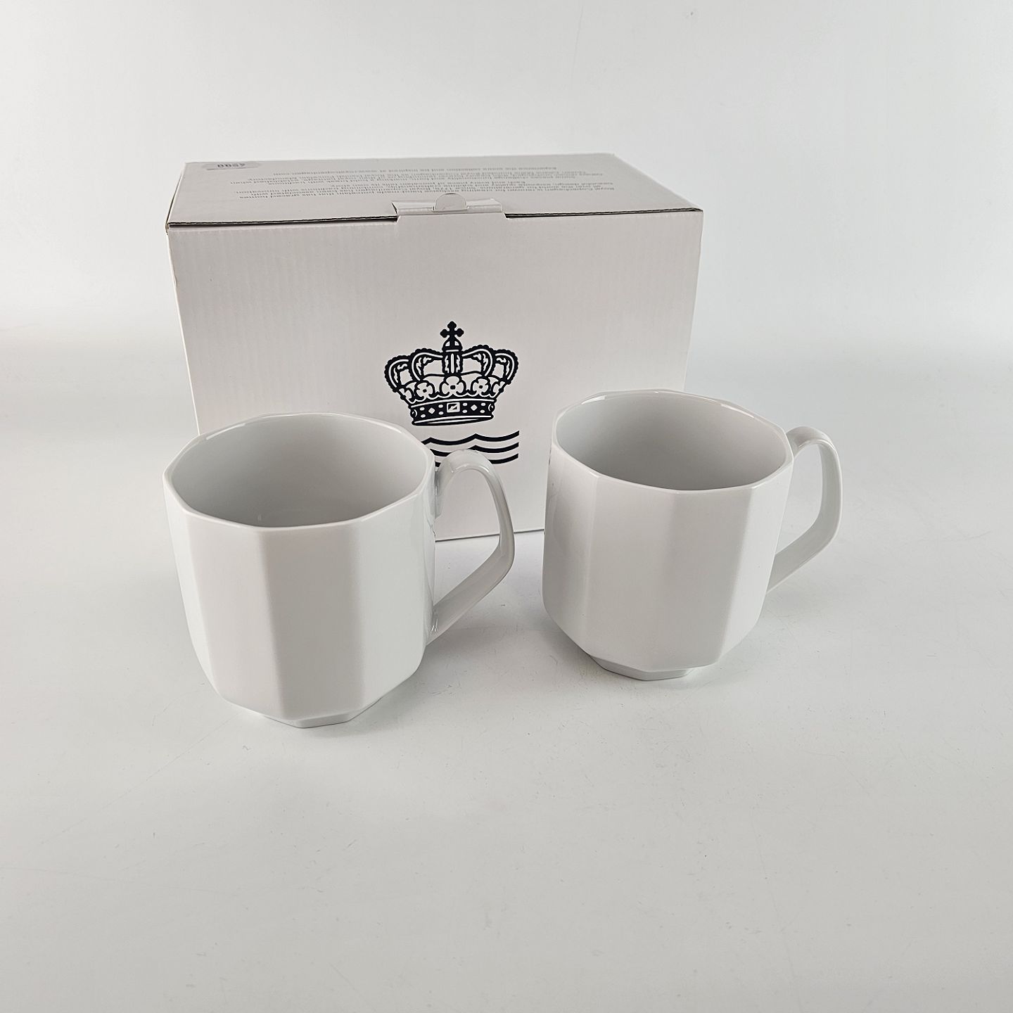 Sæt med to kopper fra stellet hvid facet. Nr 103.
