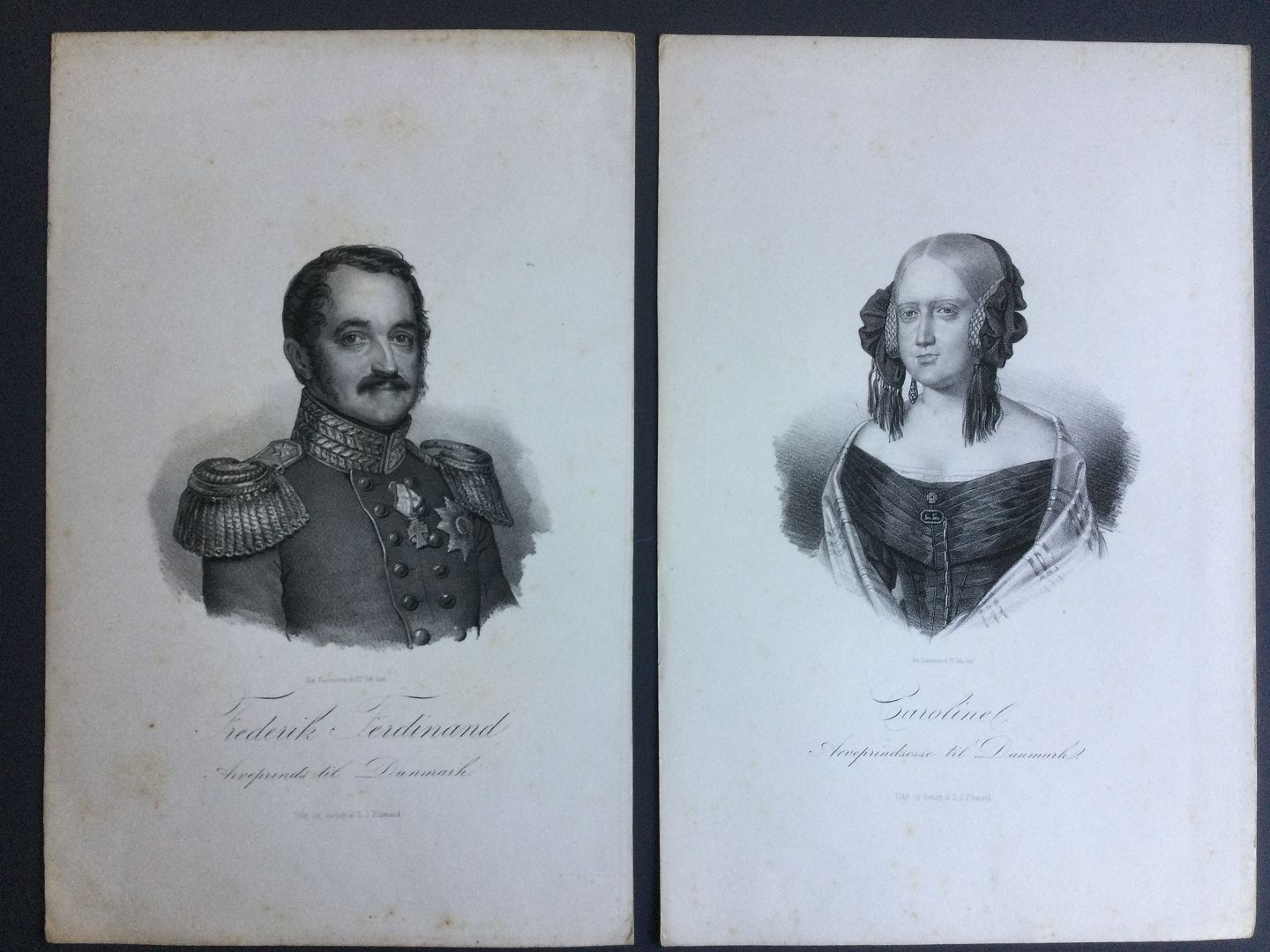 Portrætter af Arveprins Frederik Ferdinand af Danmark (1792-1863) og Arveprinsesse Caroline af Danmark (1793-1881).