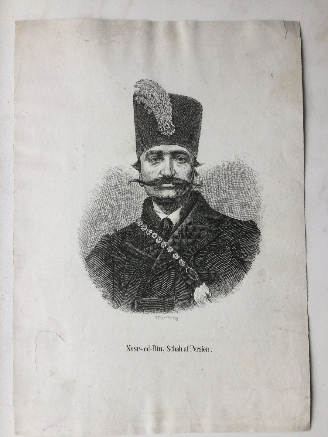 Litografi - Portræt af Shahen af Persien Nasser-al-Din.