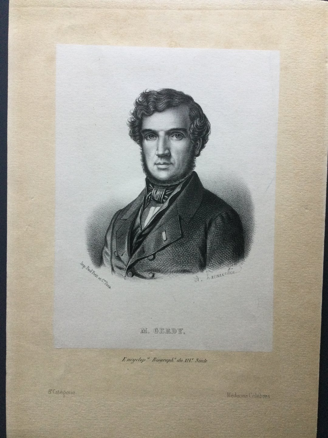 Litografi - Portræt af den franske læge Pierre Nicolas Gerdy.