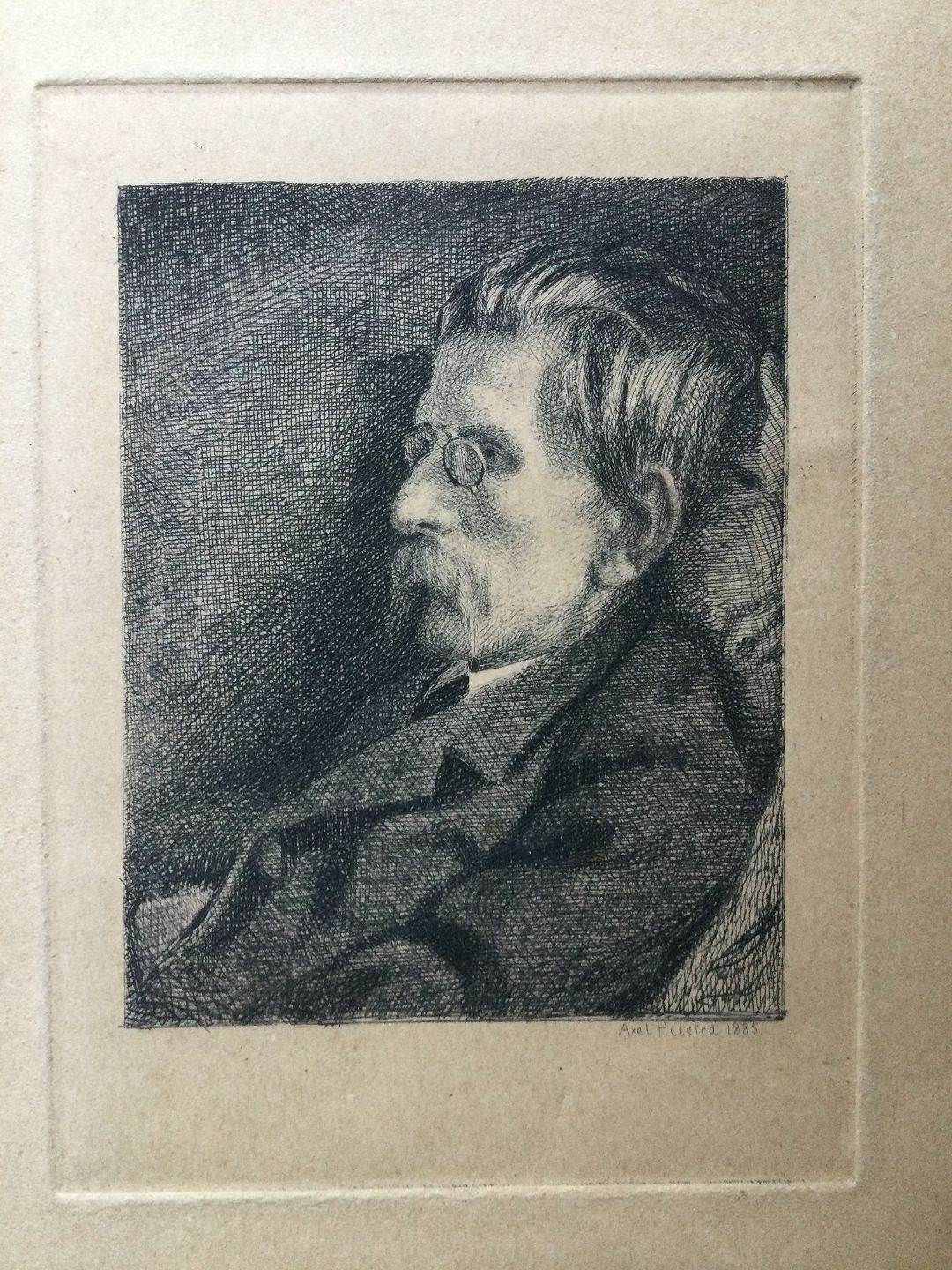 Radering Axel Helsted - Portræt af digteret J.P. Jacobsen 1885.