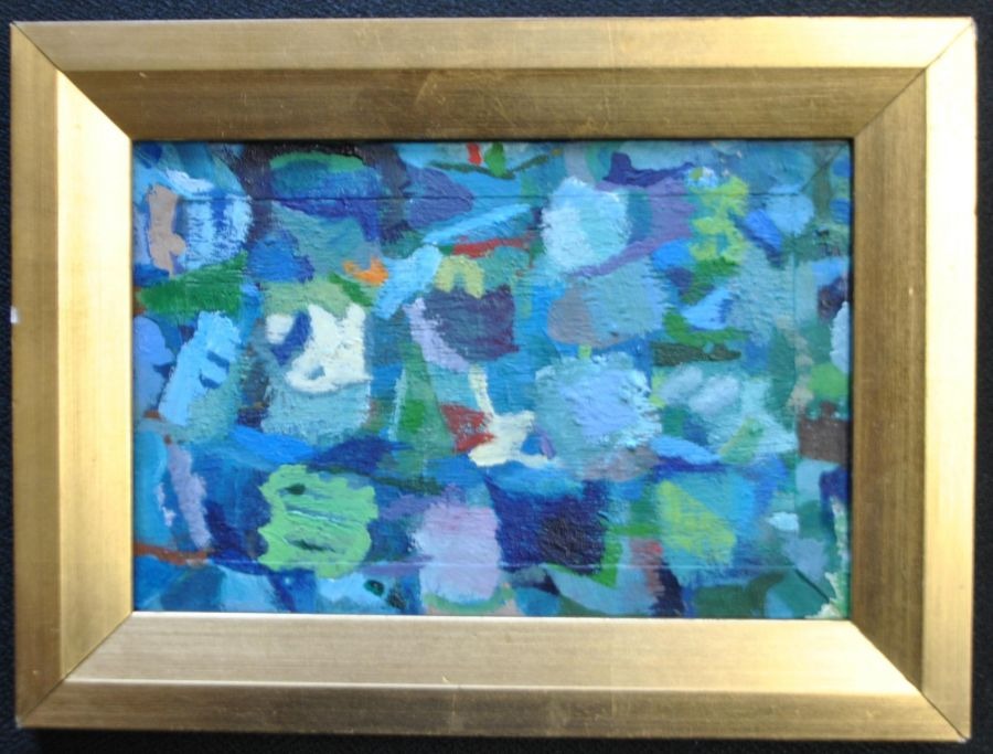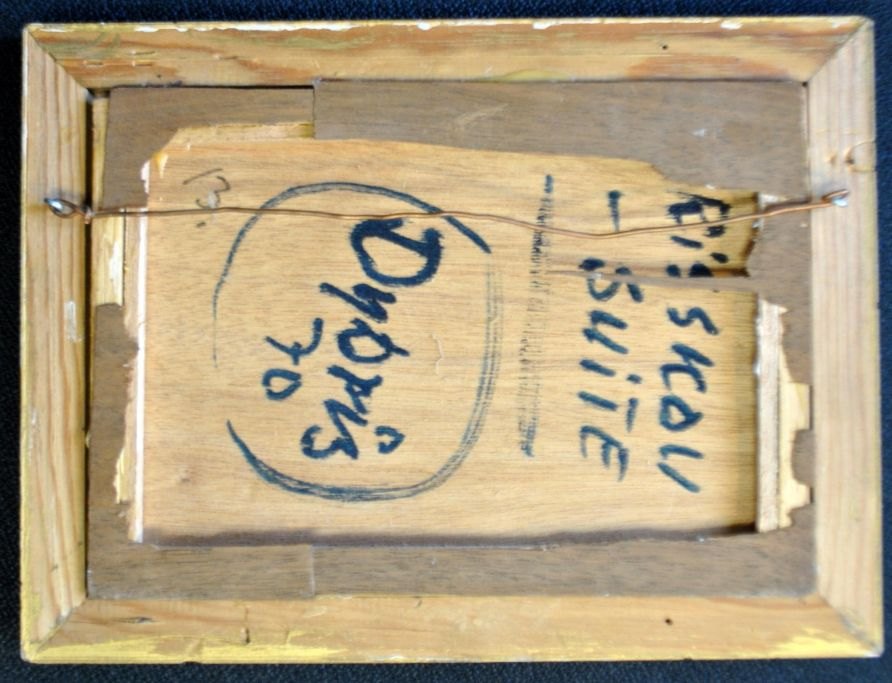 Dybris, Freddie (1922 - 1993) Danmark. Risskov suite. Verso signeret 1970. Malt på mahogni cigarkasse låg.13 x 19,5 cm.