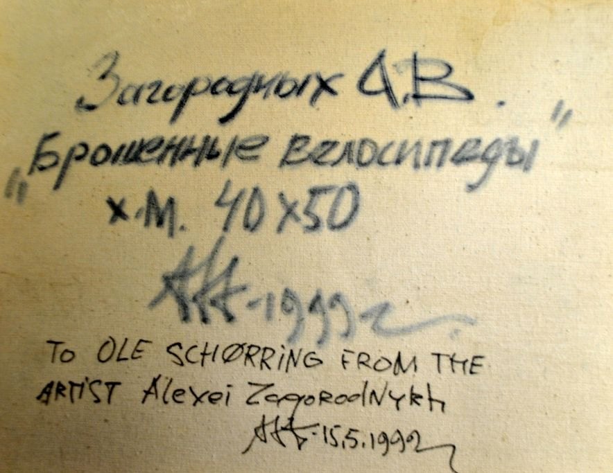 Verso: To Ole Schiørring (deceased archaeologist and head of Horsens Museum) from the artist Alexei Zagorodnykh, 15.5.1999.