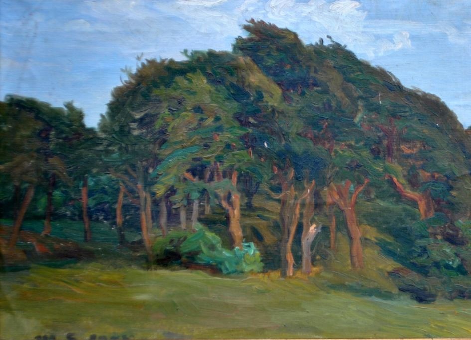Sandholt, Marie (1872 - 1942) Denmark: From Tidsvilde. Oil on canvas. Signed: MS 1905. Motif from Tidsvilde Hegn. H: 30 cm. W: 42 cm.