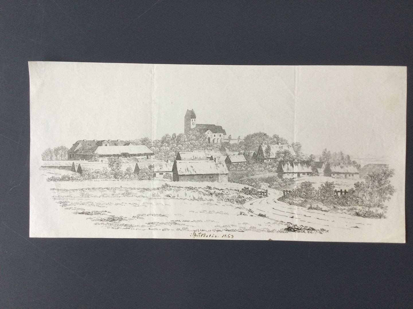 Radering af Jens Peter Lund 1853 - parti fra Skuldelev.