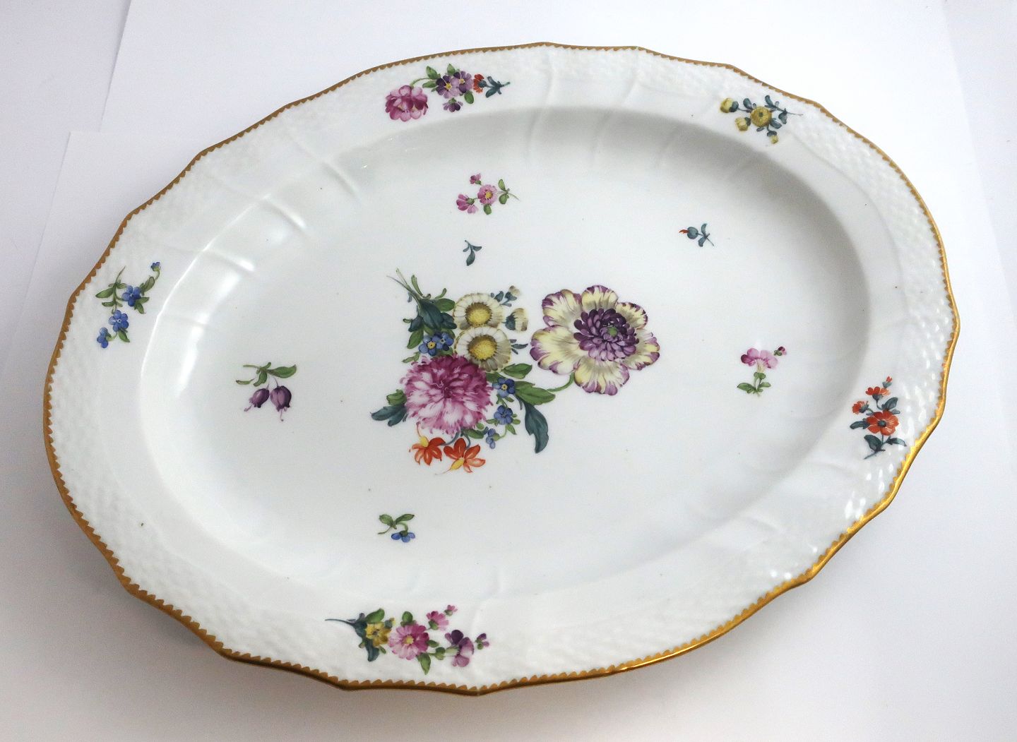 Royal Copenhagen. Saksisk blomst. Ovalt fad. Model 1556. Længde 37 cm. Bredde 29 cm. Produceret før 1923. (1 sortering)