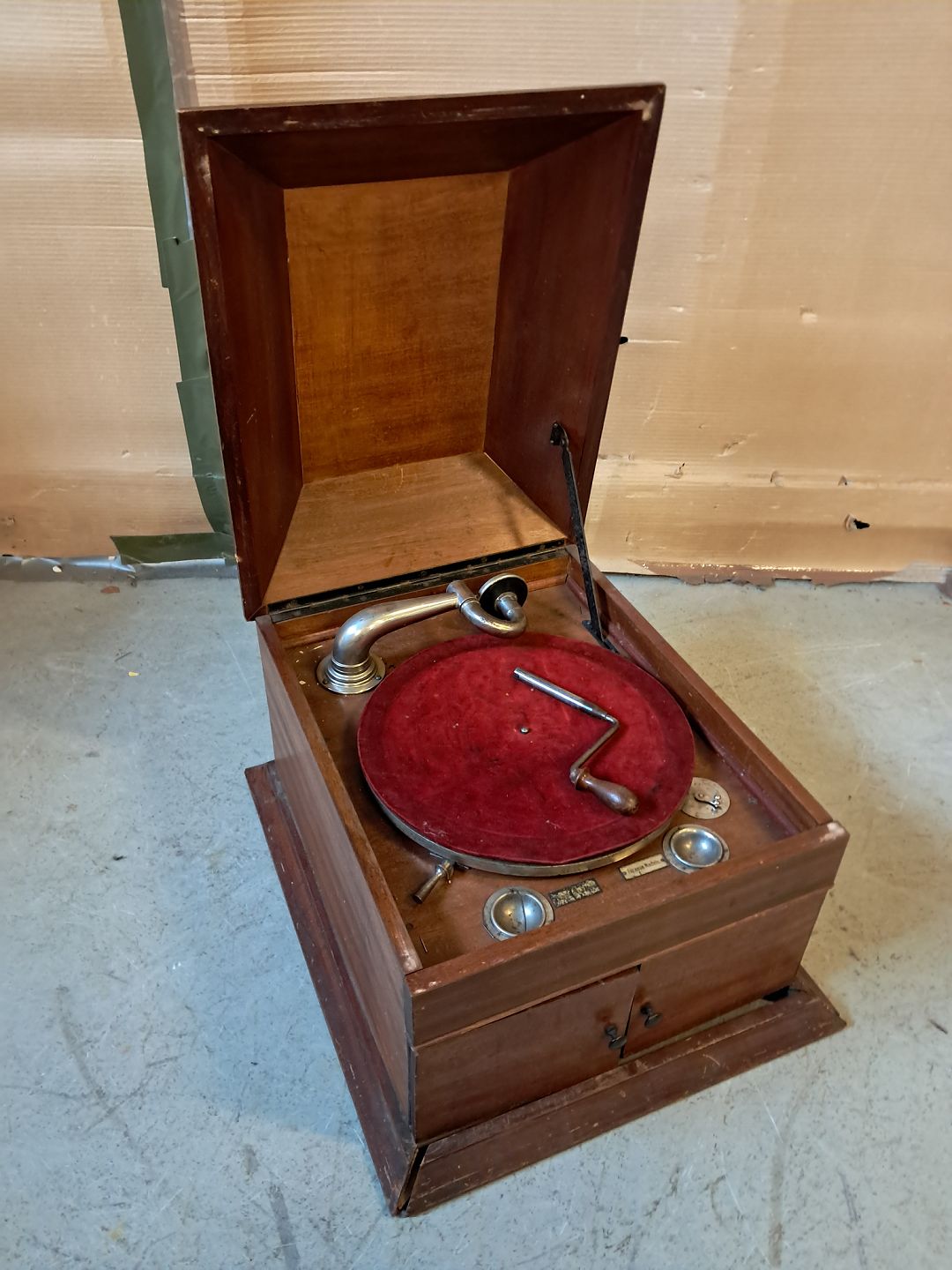 Pladespiller i trækasse, fra 1920erne.