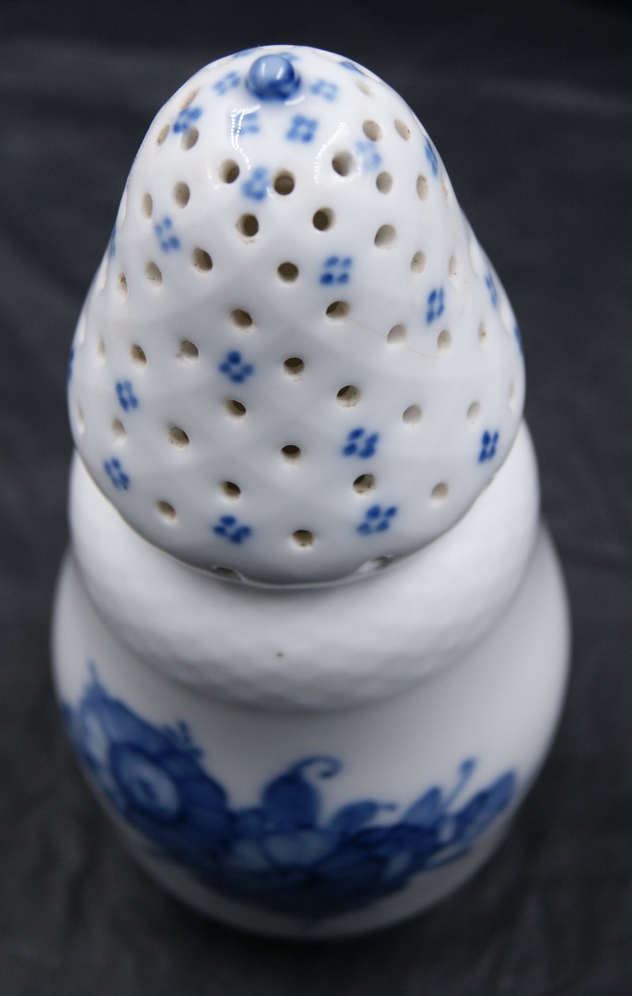 Blue Flower Plain Danish porcelain. Large sprinke pot No 8222, 18.5cm