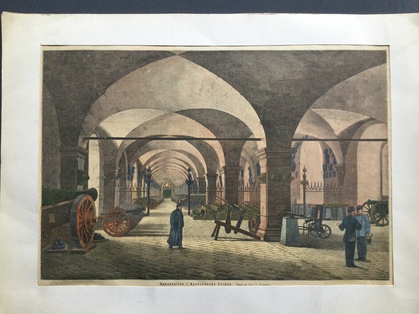 Håndkoloreret Xylografi af Christian Vilhelm Nielsen - Kanon hallen i Tøjhuset i København .