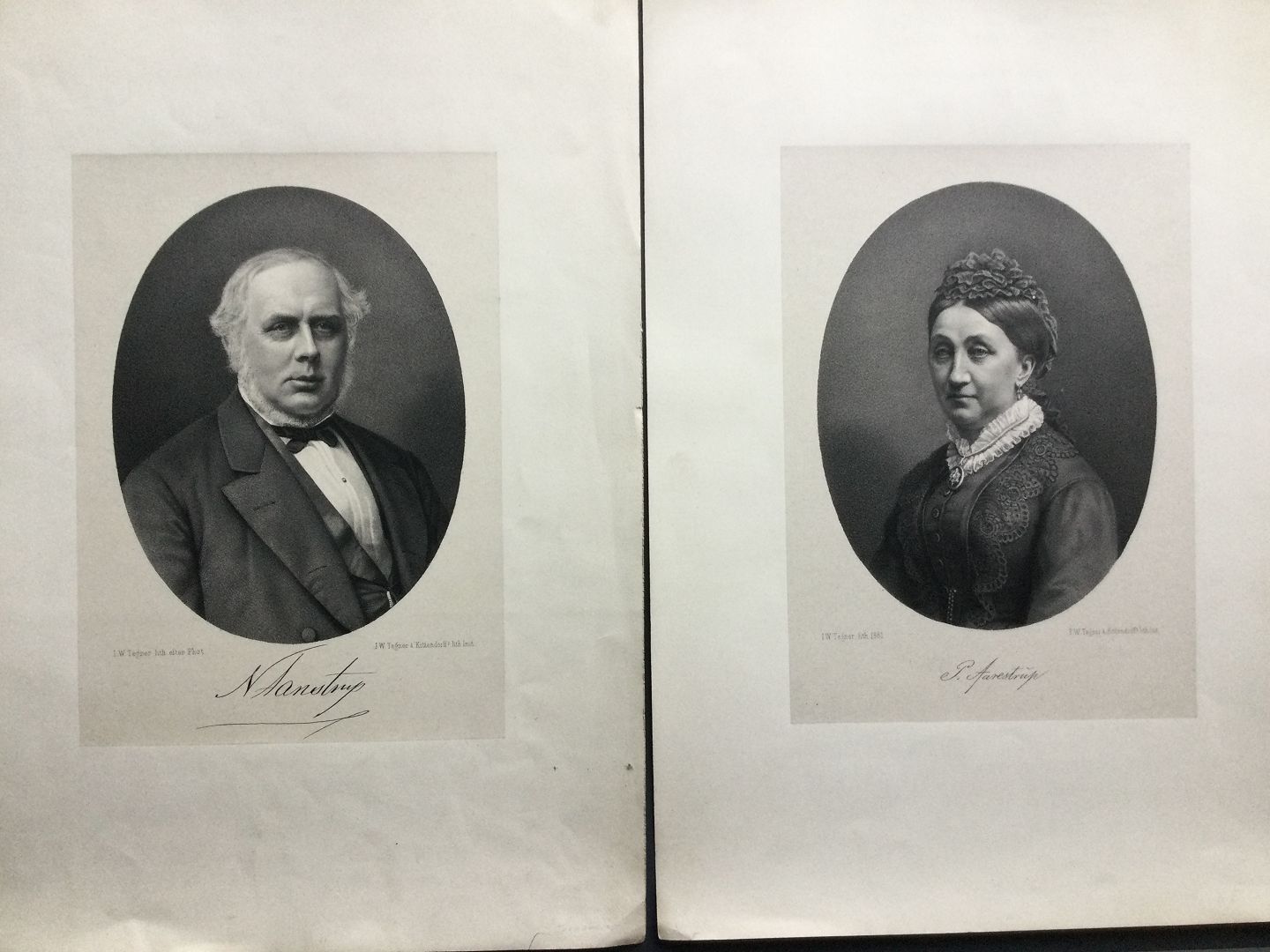 Litografier af I.W. Tegner - Portrætter af Grossere Niels Aarestrup og fru Petrine Aarestrup.