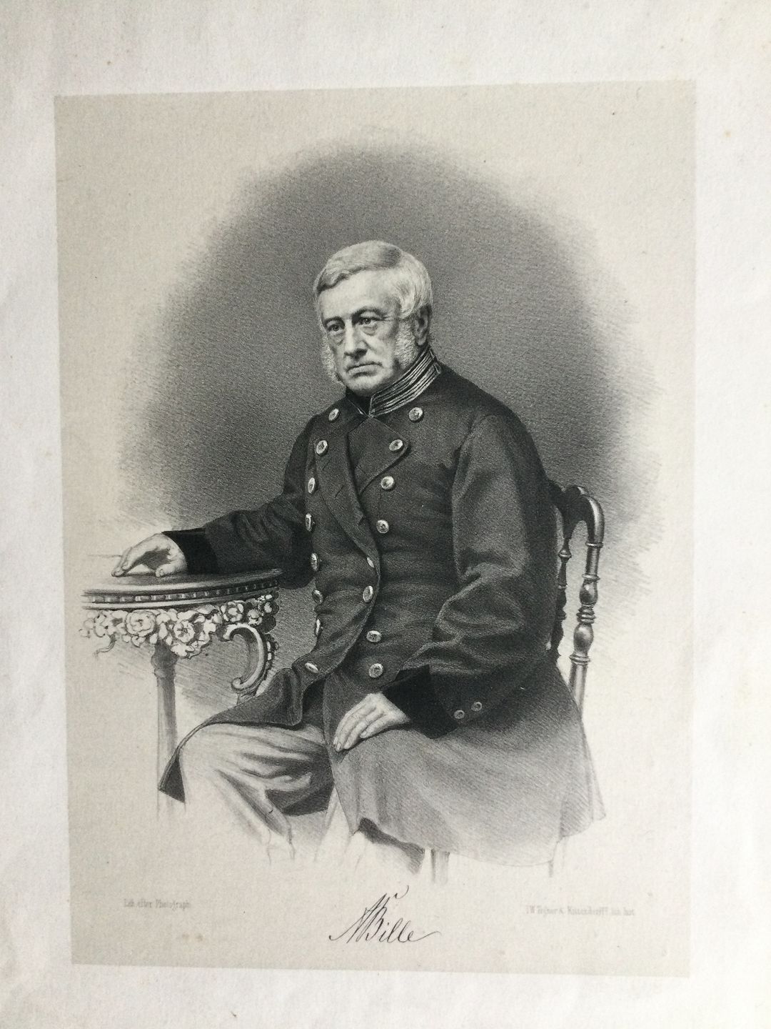 Litografi af I.W. Tegner - Portræt af Toldkontrollør i Helsingør H.A. Bille.