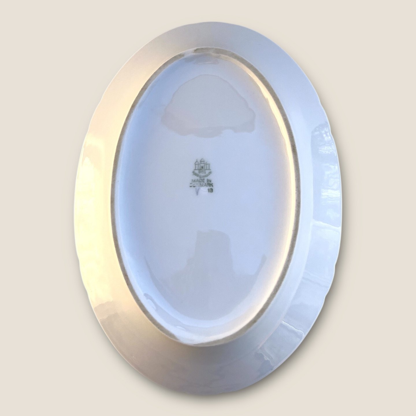 Bing & Grøndahl, Måge uden guld, Serveringsfad #18, 25,5cm bred, 18cm dyb, Design Fanny Garde *Pæn stand*