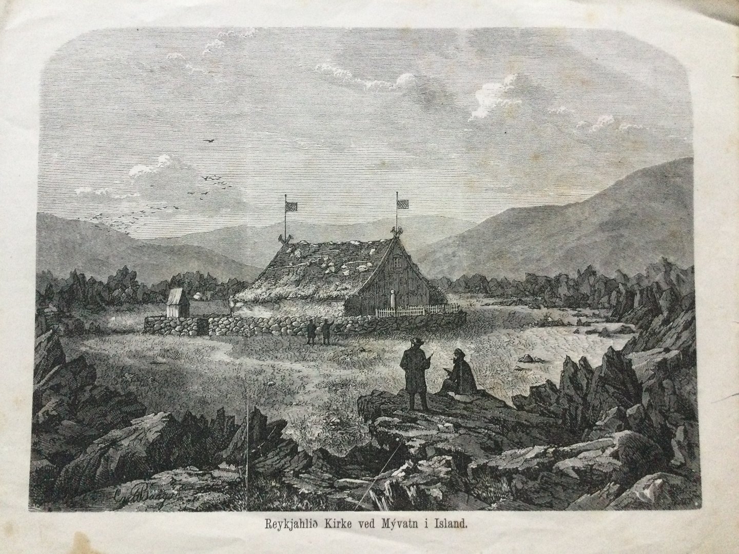 Xylografi af Carl Emil Baagøe - Kirken i Reykjavik, Island