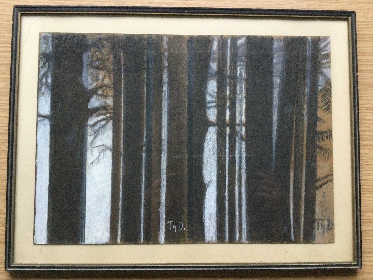 Pastel af Thorvald Deleuran - Stammer af nåletræer.
