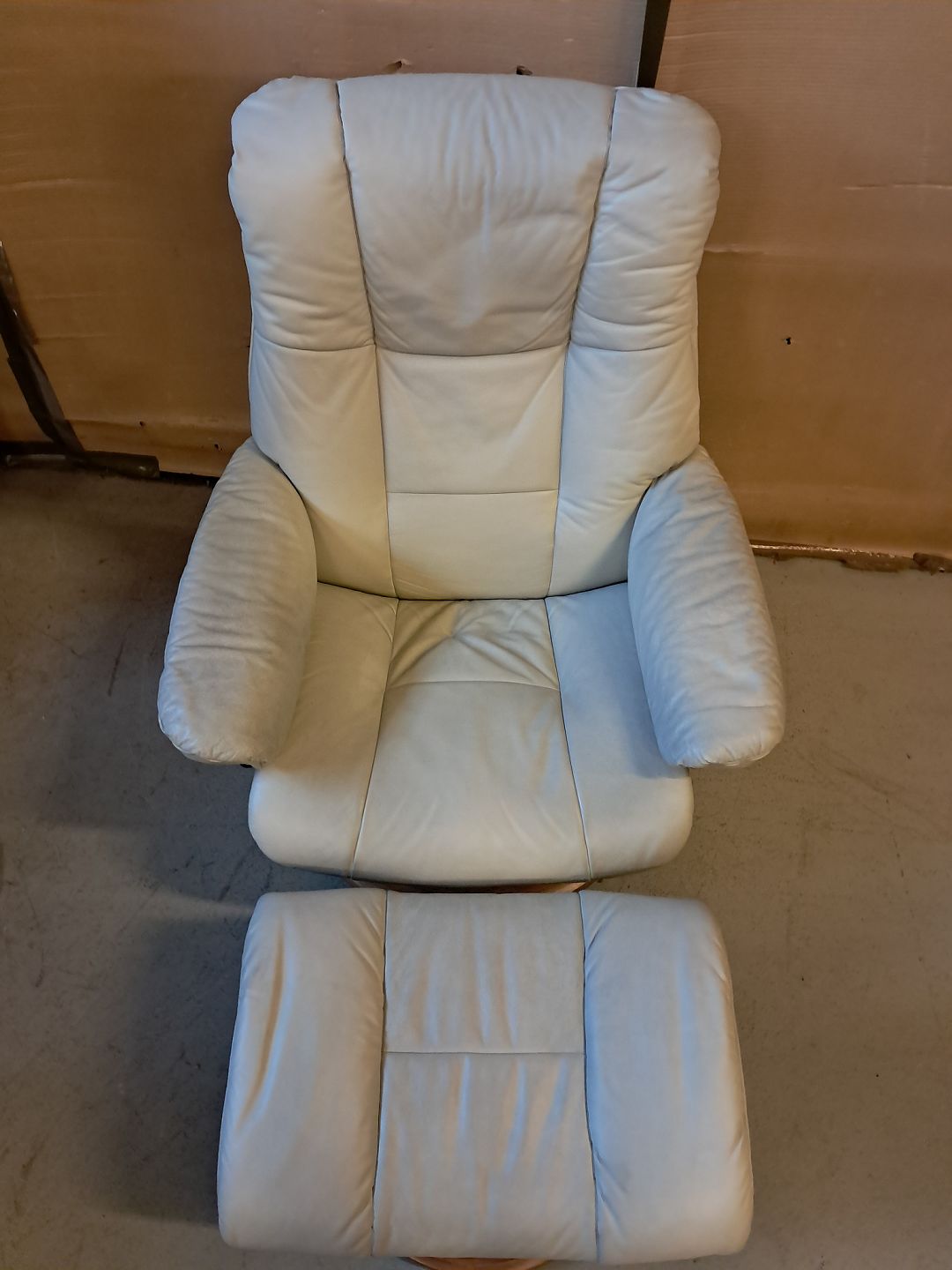 Stressless lænestol og fodskammel i læder, fra 2000erne.