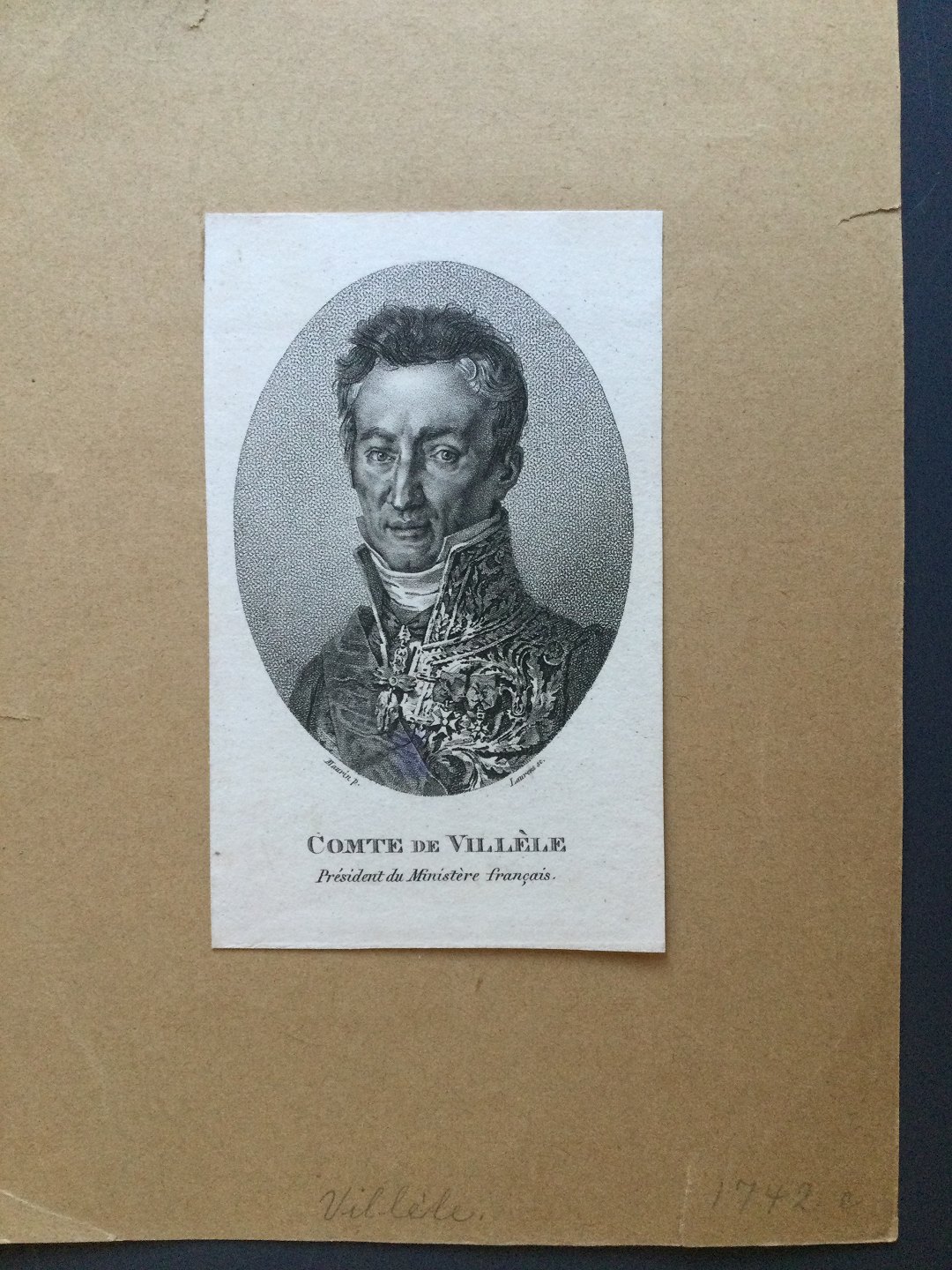 Kobberstik af Jules Laurens - Portræt af den franske politiker Comté Jean-Baptiste Villèle.
