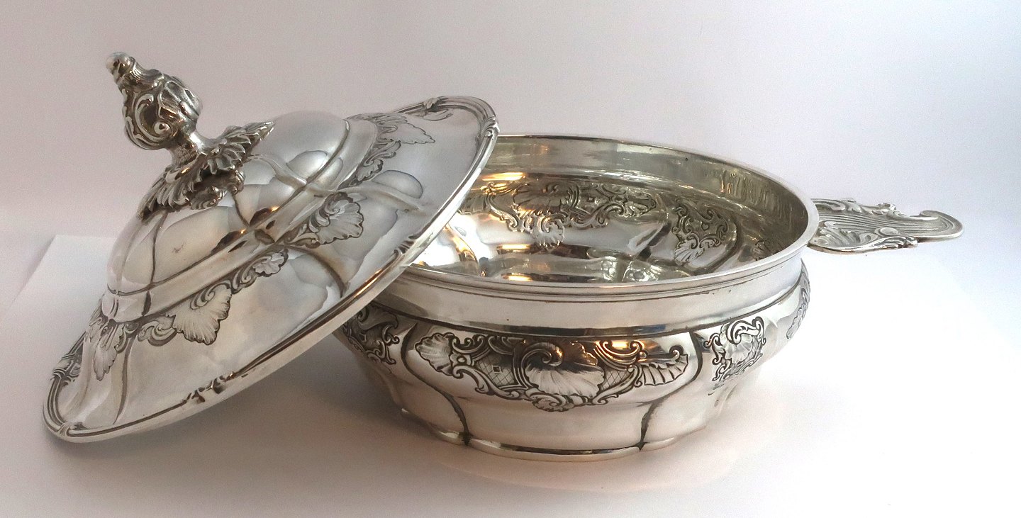 Michelsen. Sterling lågfad (925). Diameter uden hanke 18,5 cm. Højde 16 cm. Produceret 1917.