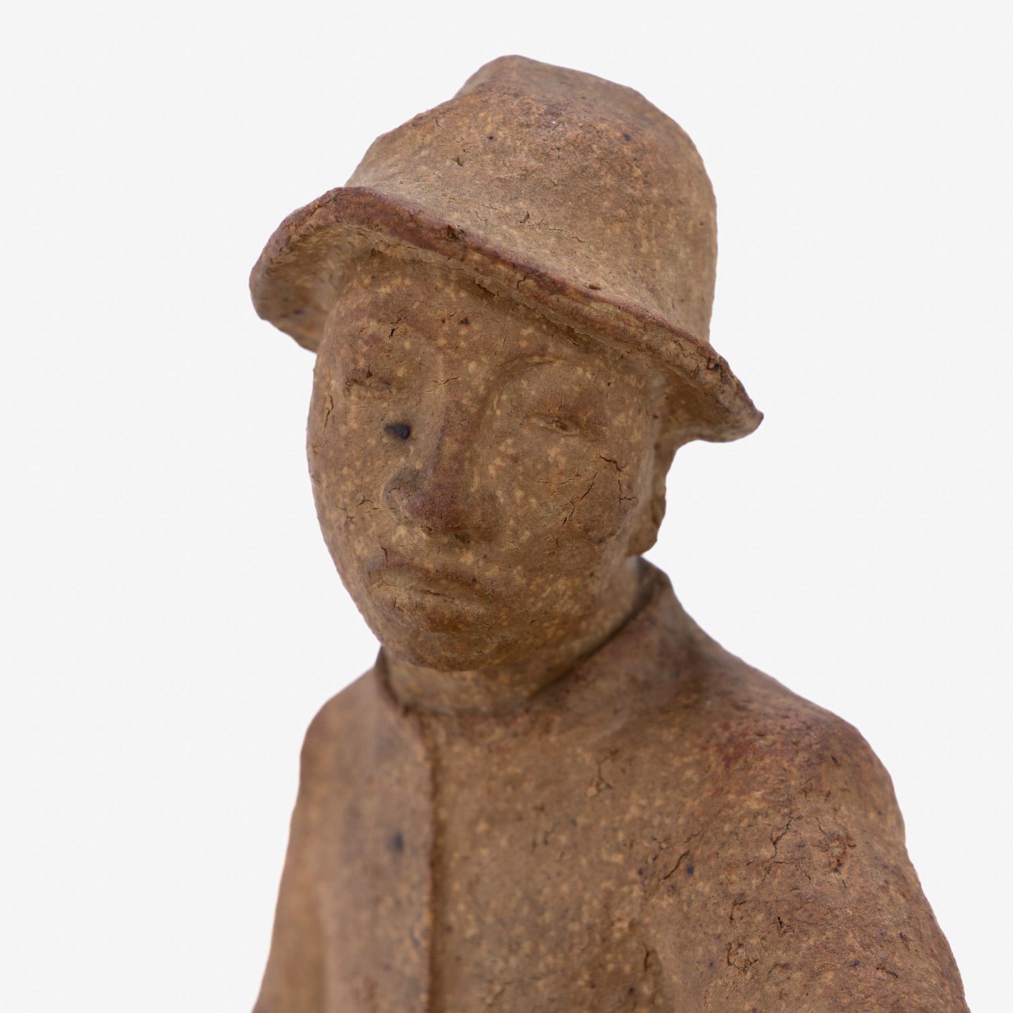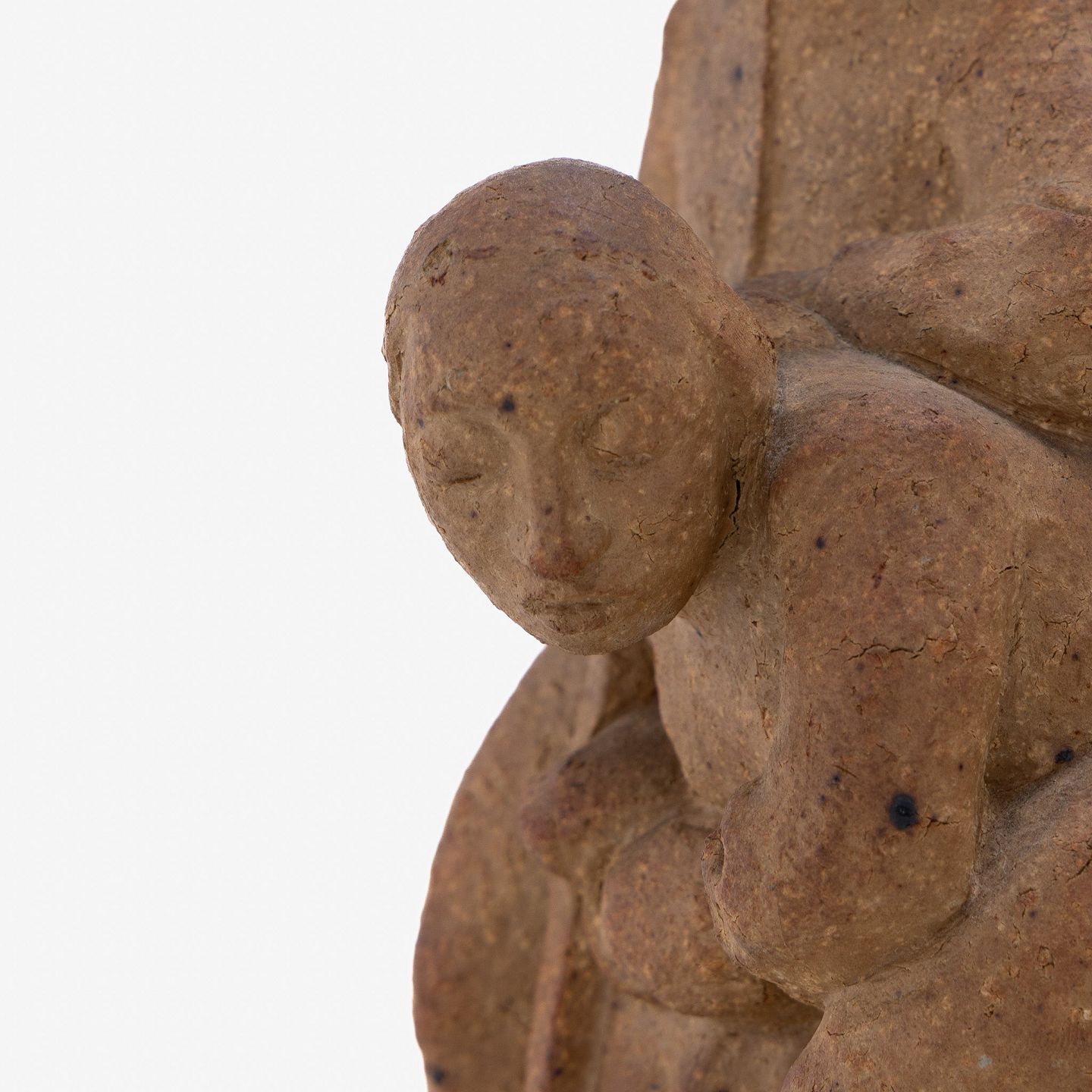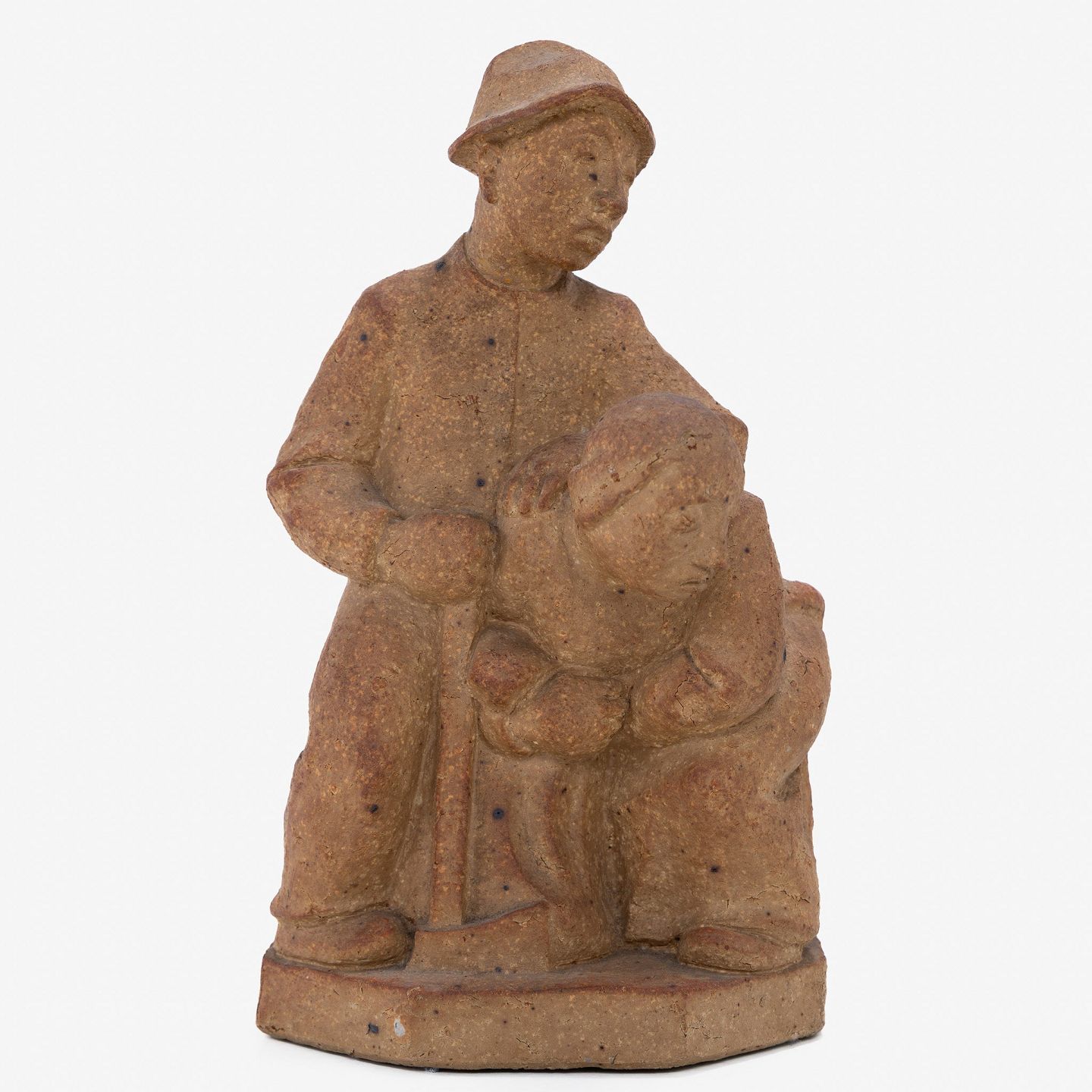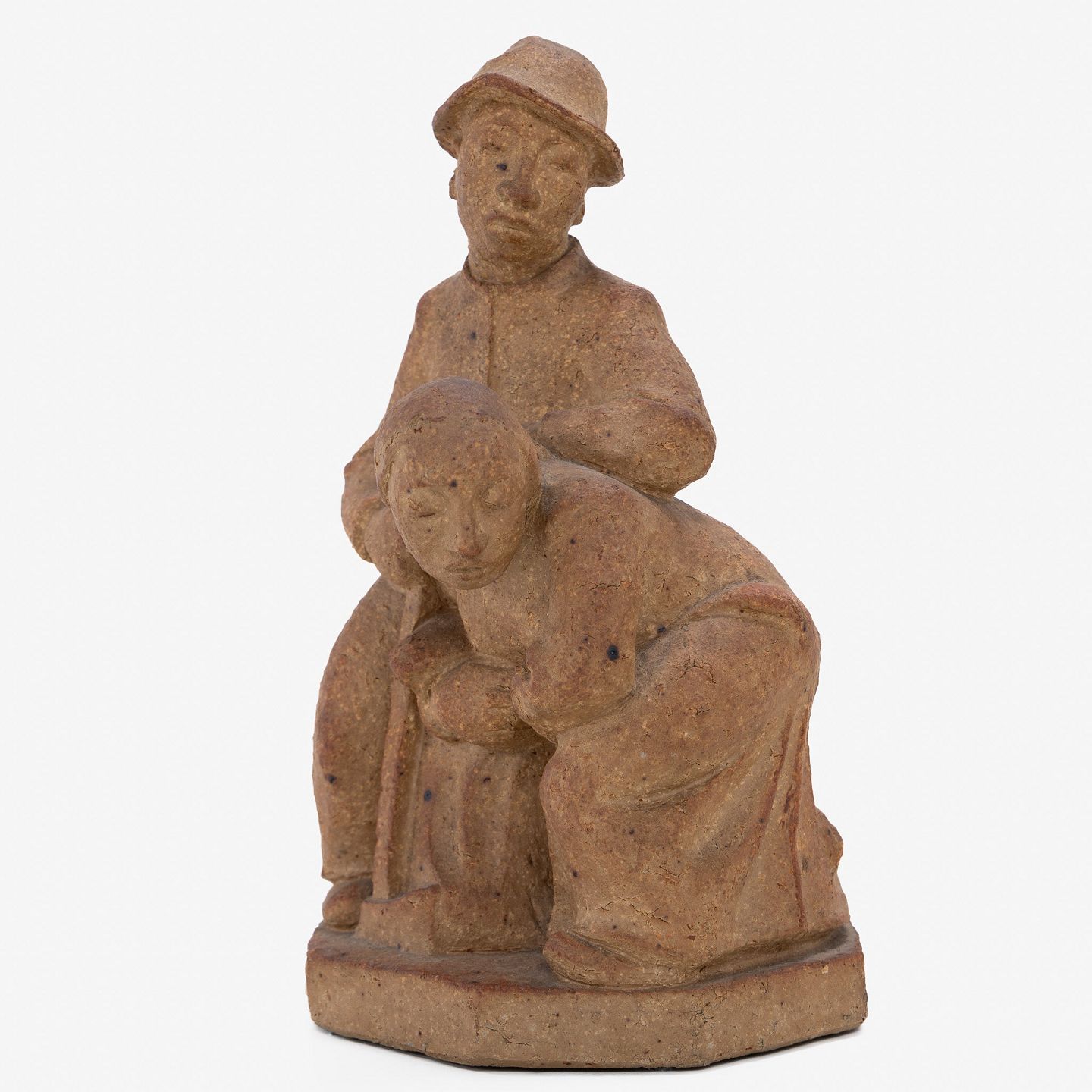 Skulptur af mand og kone i uglaseret stentøj.