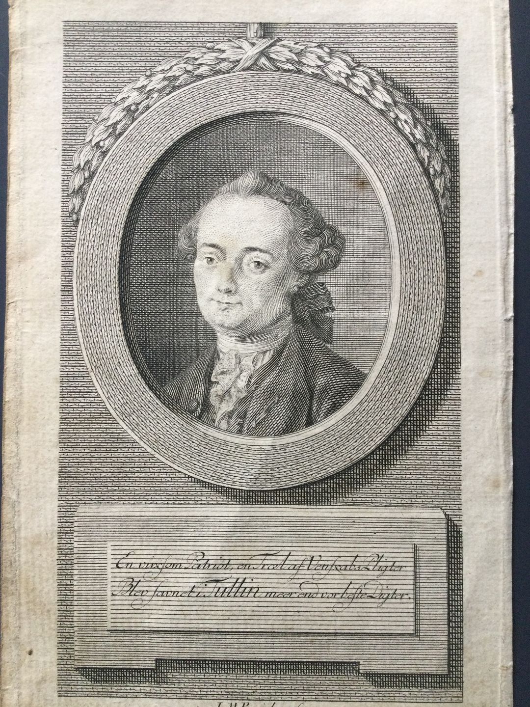 Kobberstik af Johan Martin Preisler - Portræt af den norske digter Christian Baumann Tullin.