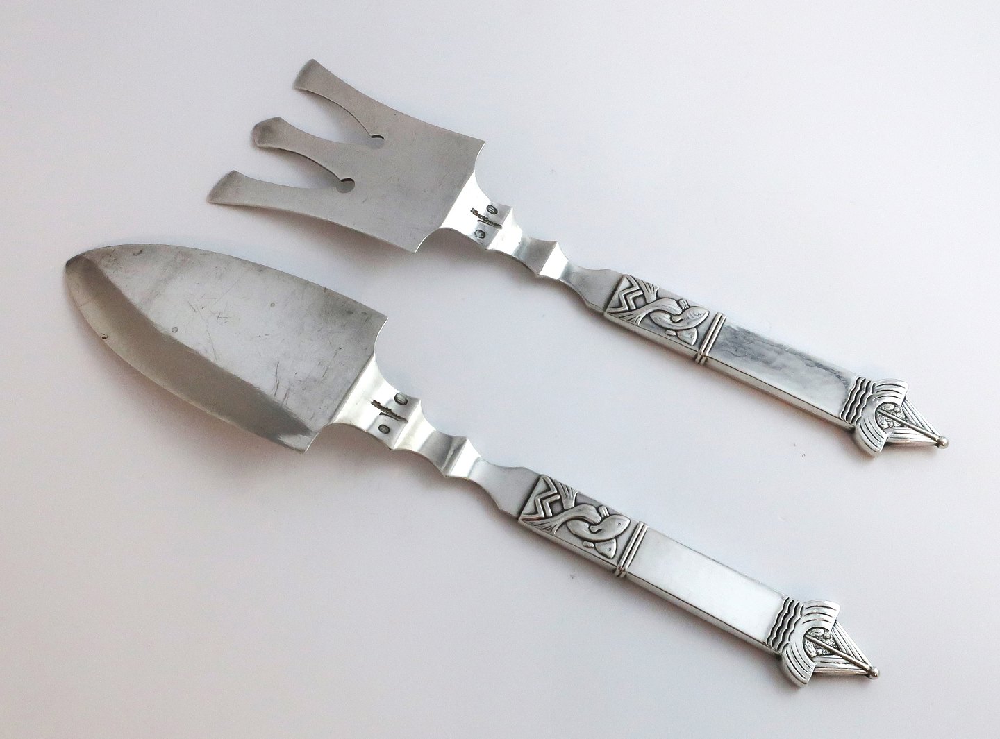 Hans Hansen. Silver cutlery (830). Fish serving set. Length 25.2 cm. Produced 1930.