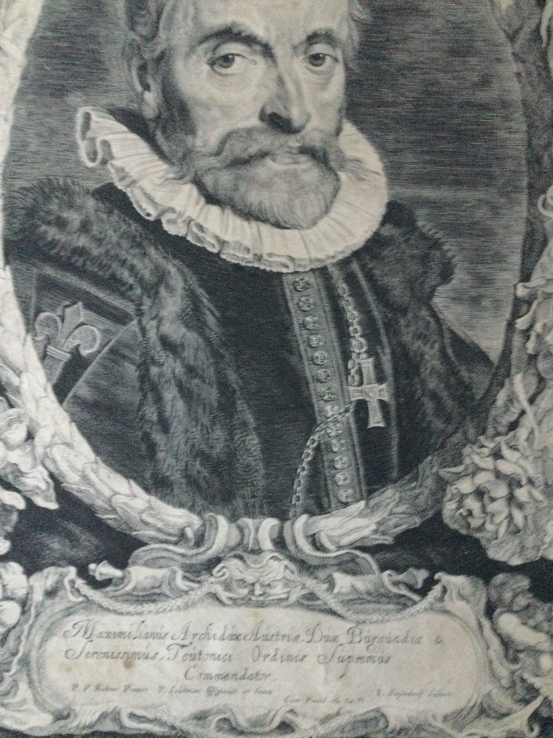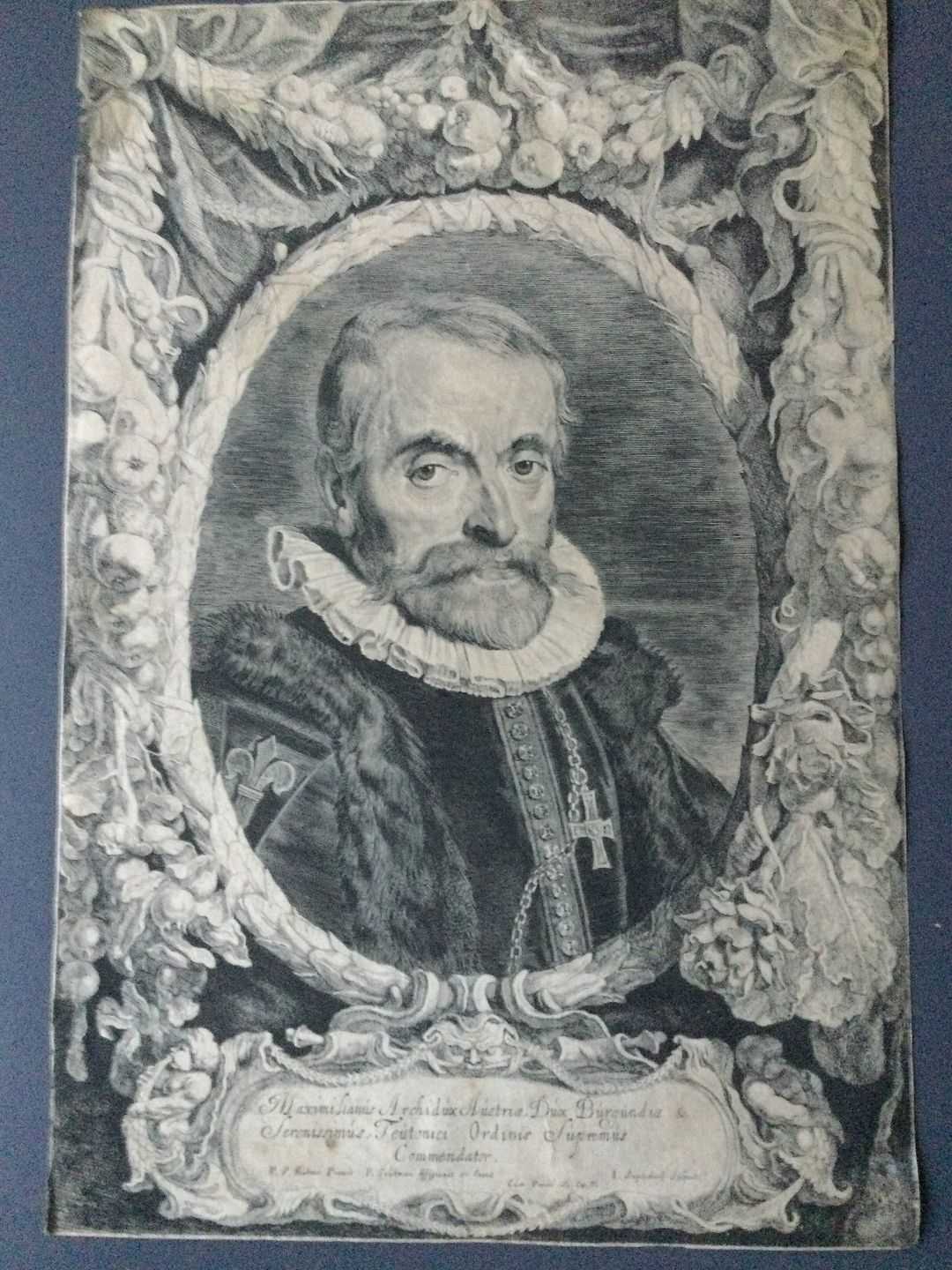 Kobberstik af Jonas Suÿderhoef - Portræt af Ærkehertug Maximillian III af Østrig.