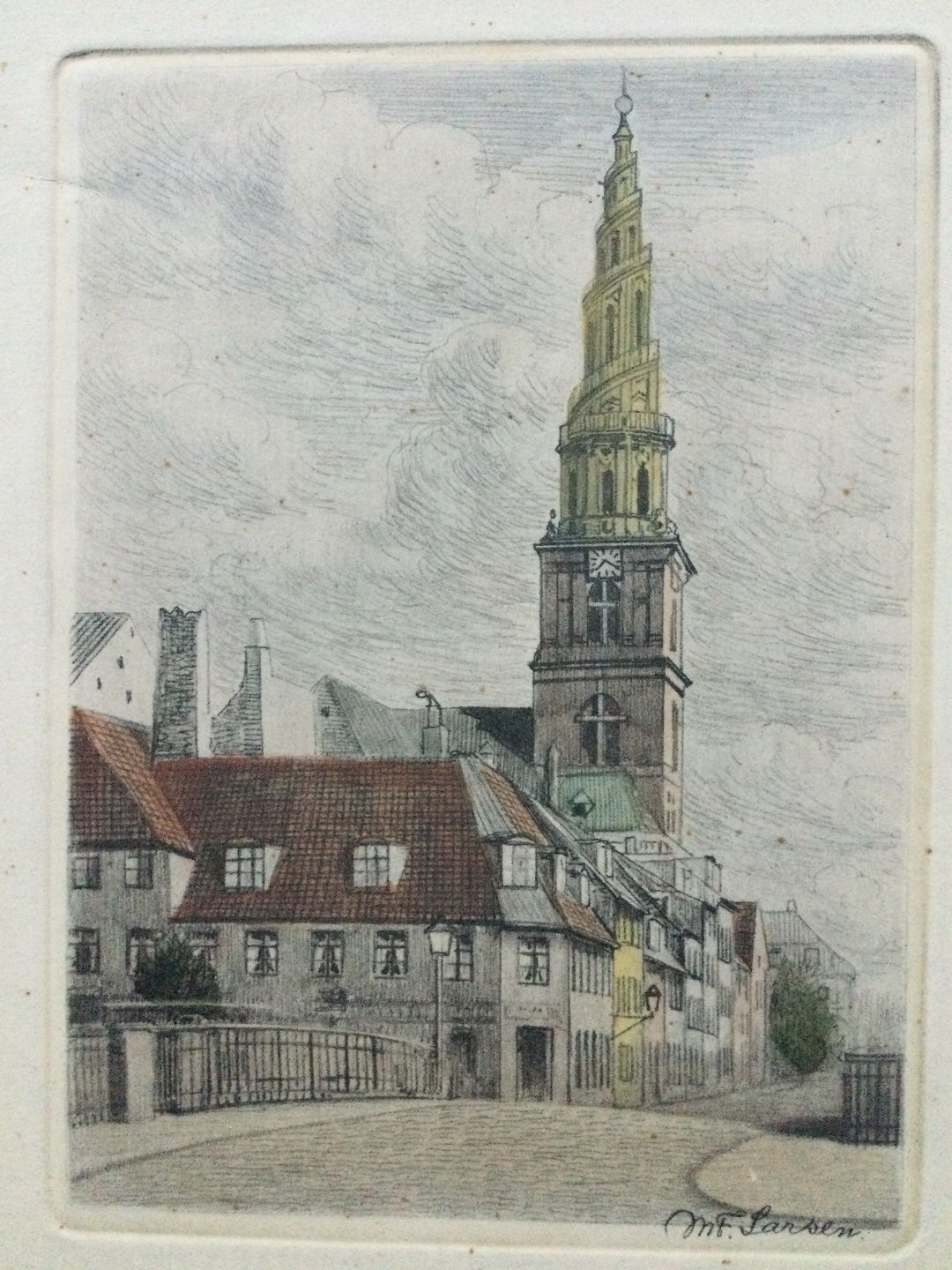 Text available in Danish: Radering af Martin F. Larsen - Vor frelse Kirke, Christianshavn, København.