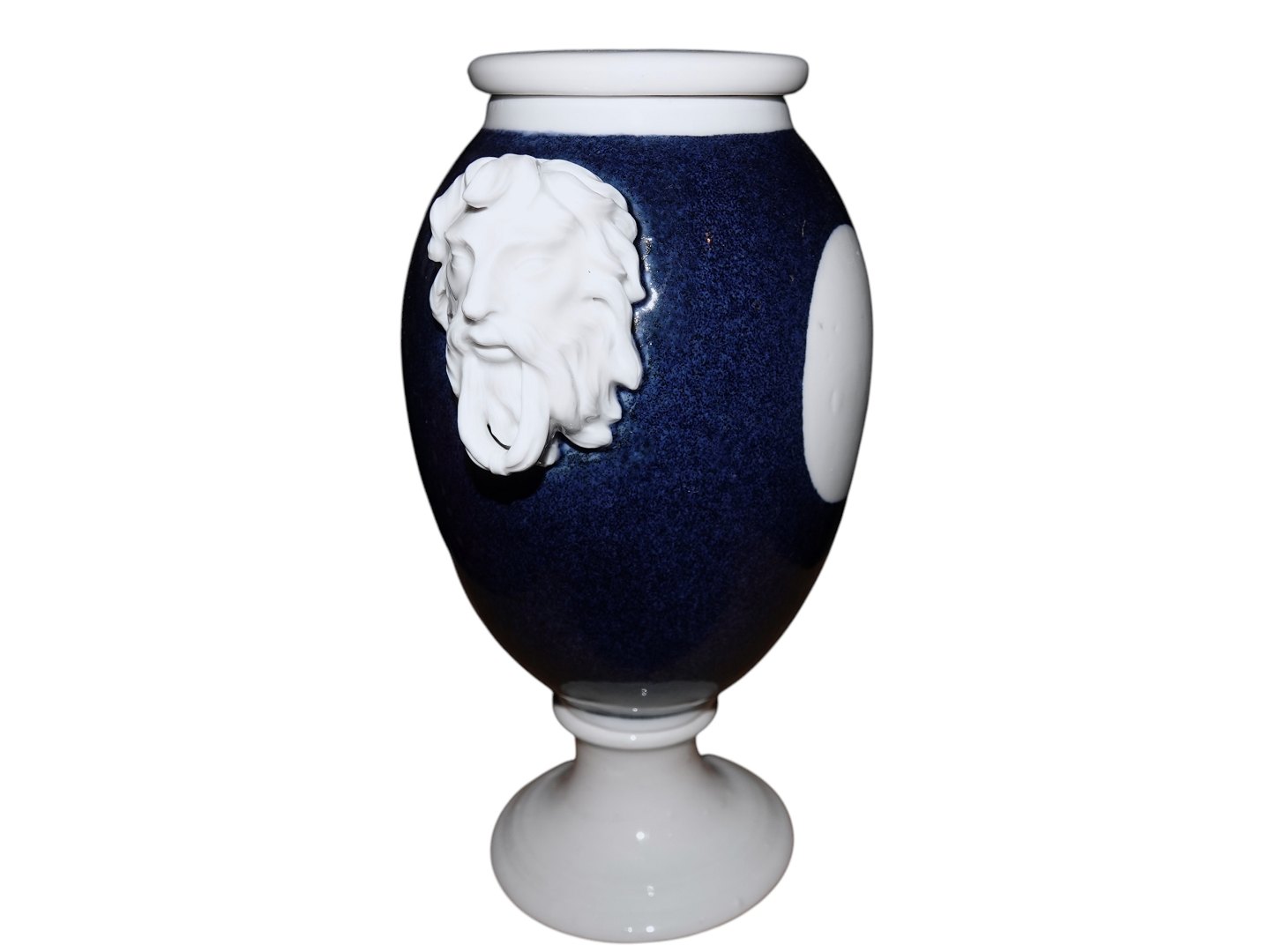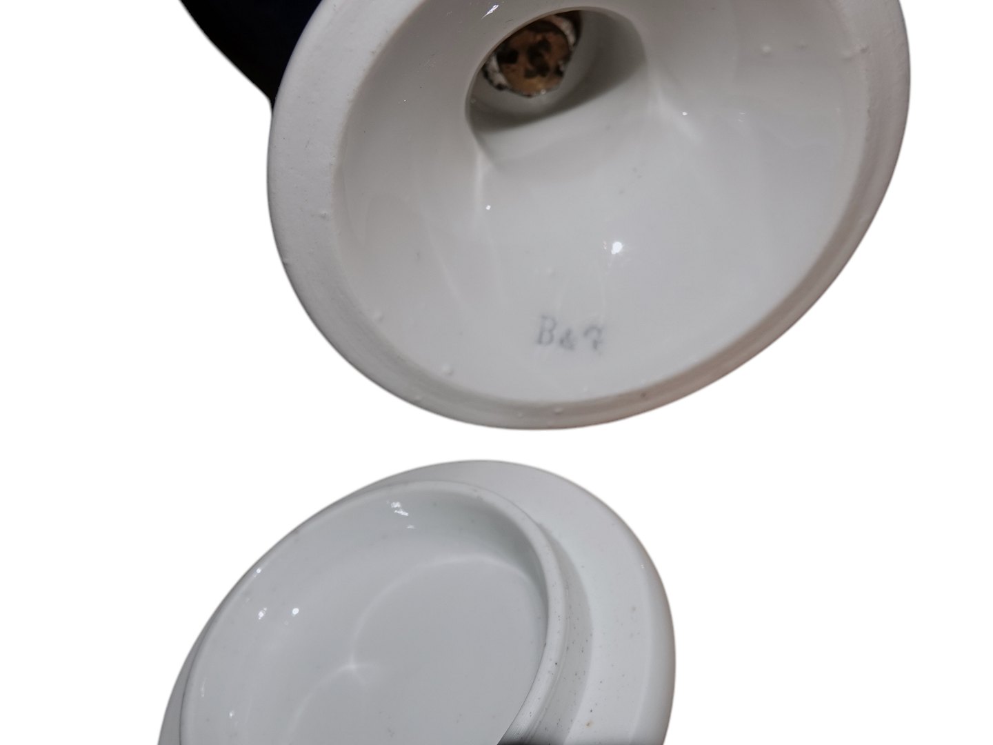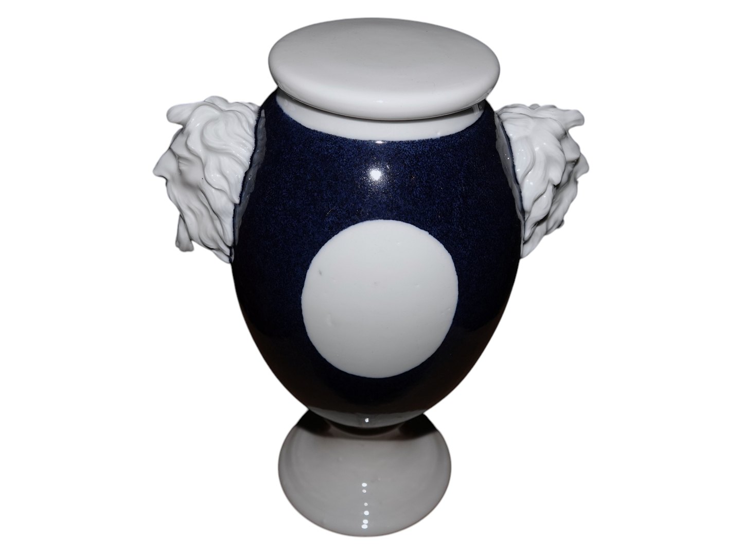 Stor og antik Bing & Grøndahl mørkeblå krukke med låg.