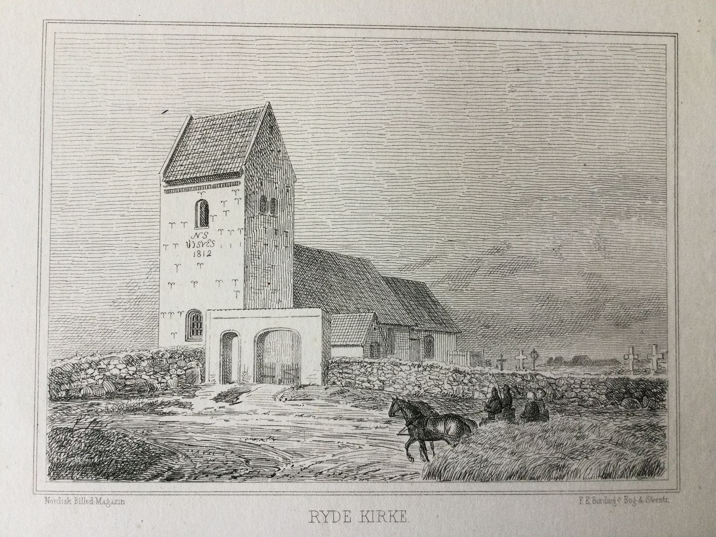 Radering af F.E. Bording - Ryde kirke ved Holstebro ca 1865.