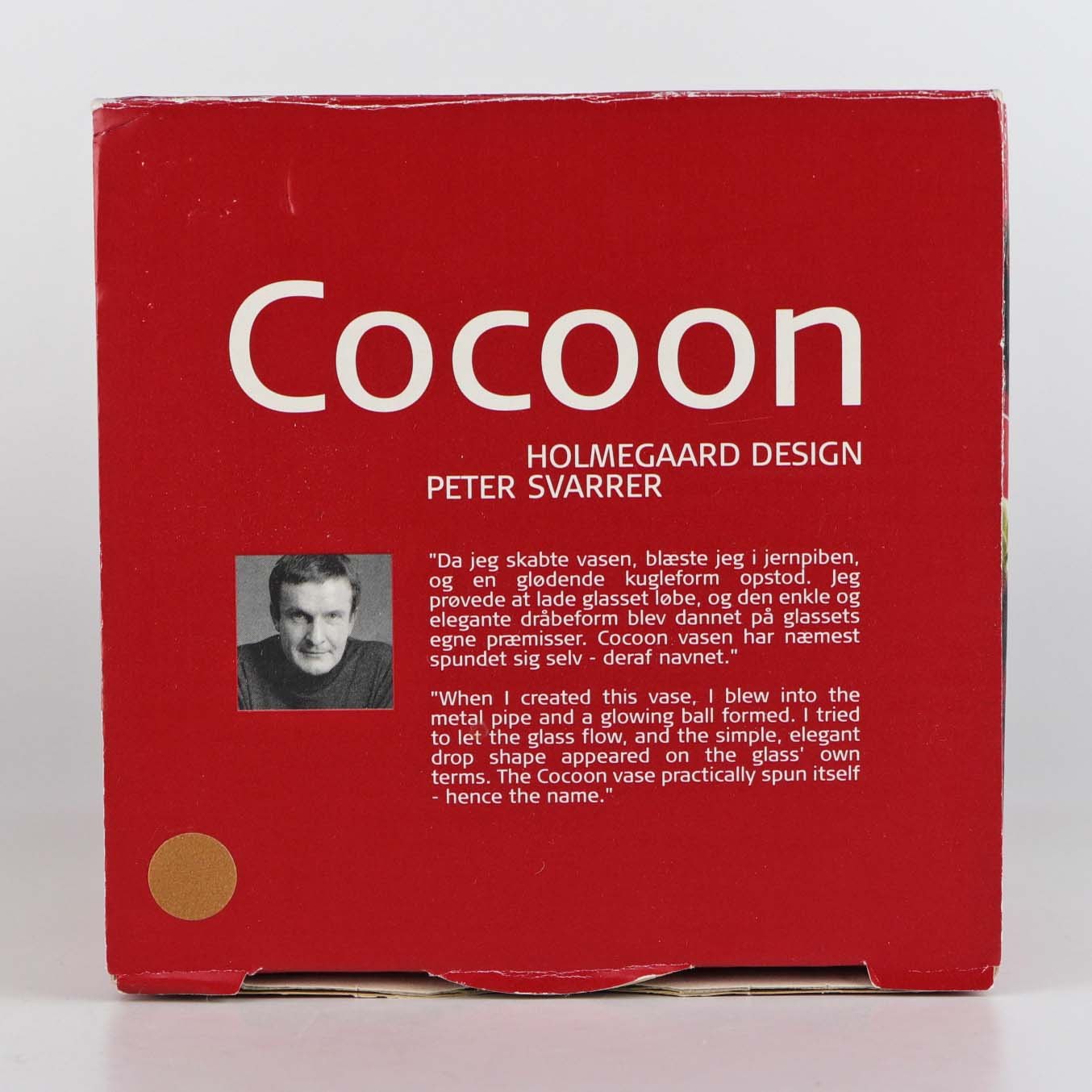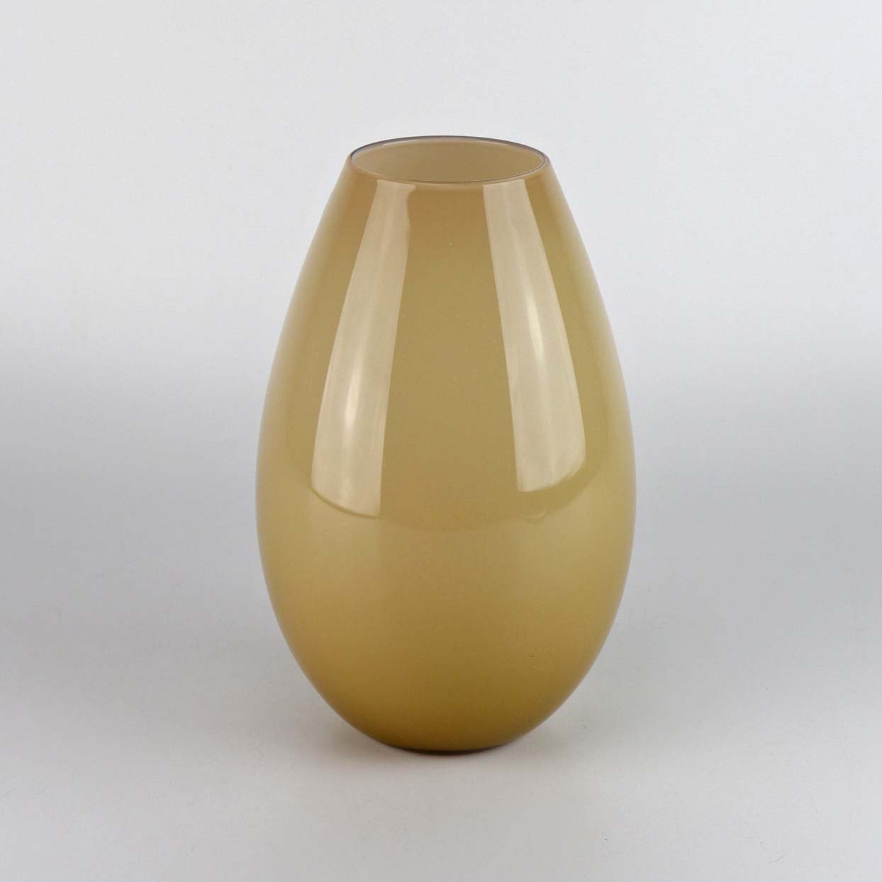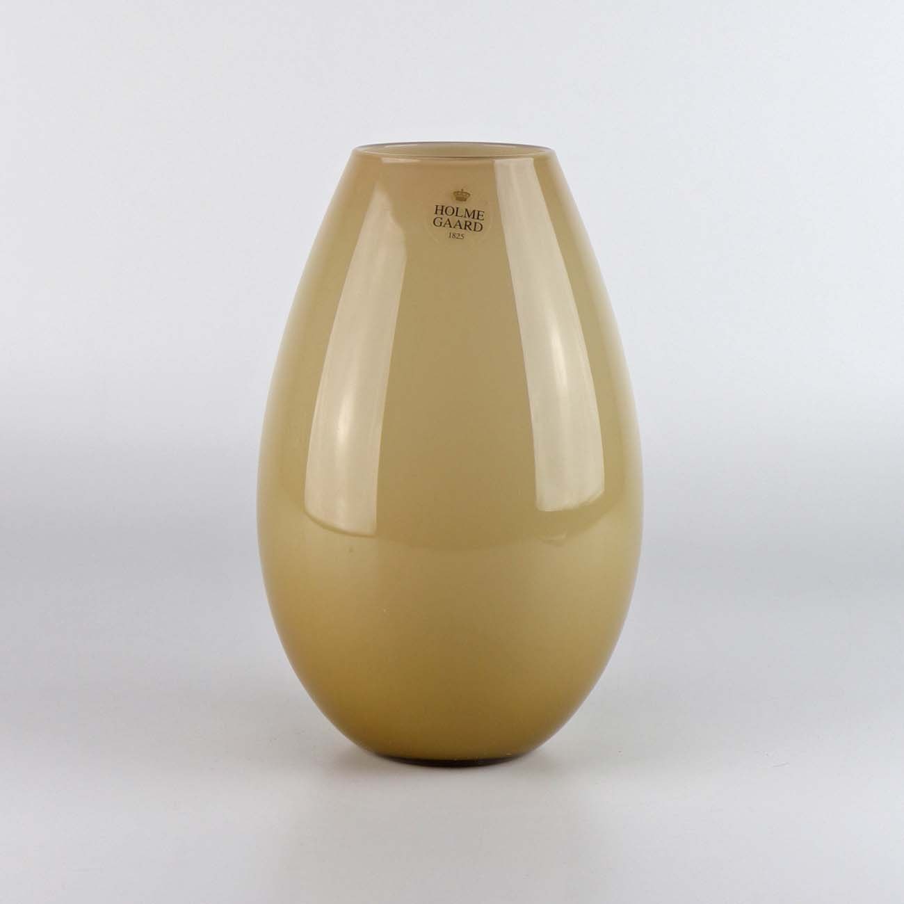 Oval vase i beige farvet glas. Model Cocoon. Vasen kommer i original boks.
